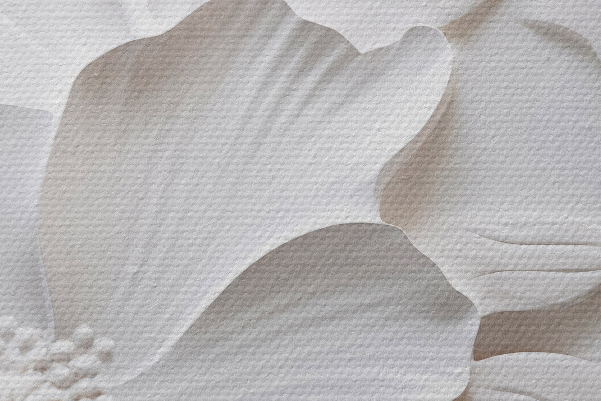 Ronde schilderijen Decoratieve minimalistische witte bloemen met bladeren, reliëfimitatie, witte achtergrond Nr r45180