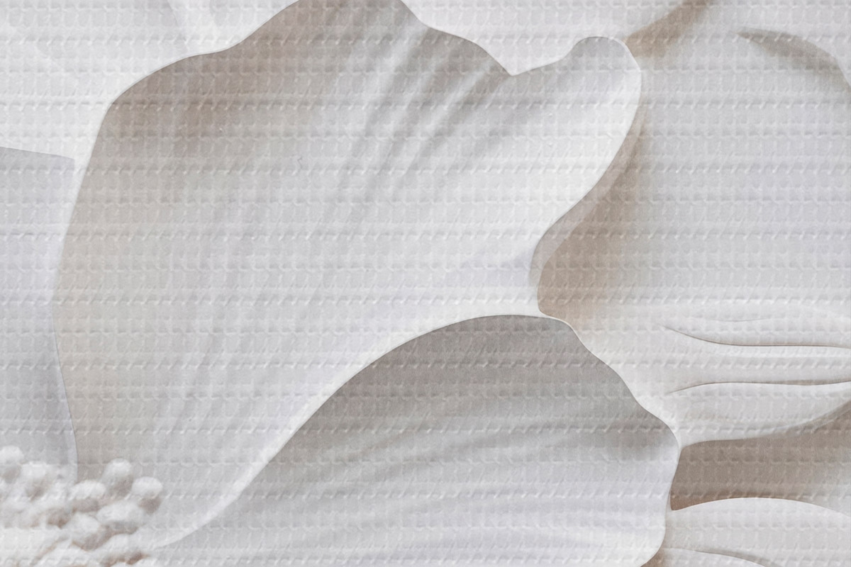 Ronde schilderijen Decoratieve minimalistische witte bloemen met bladeren, reliëfimitatie, witte achtergrond r45180