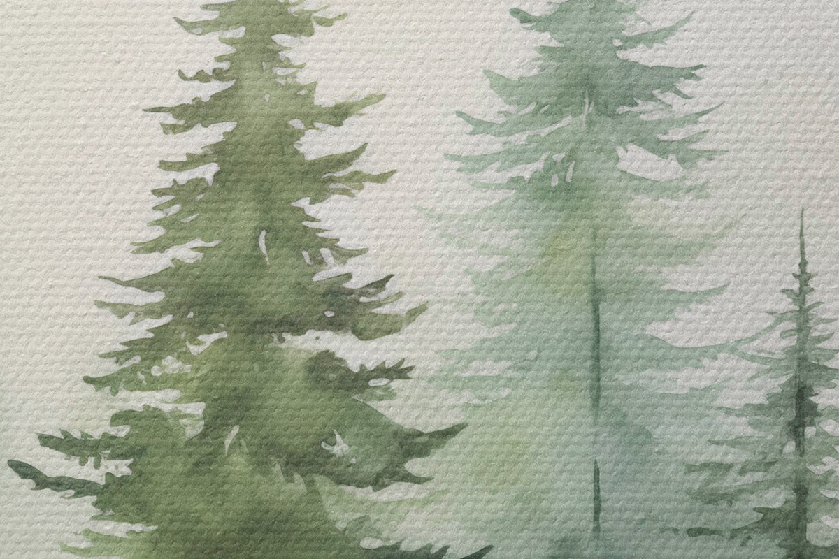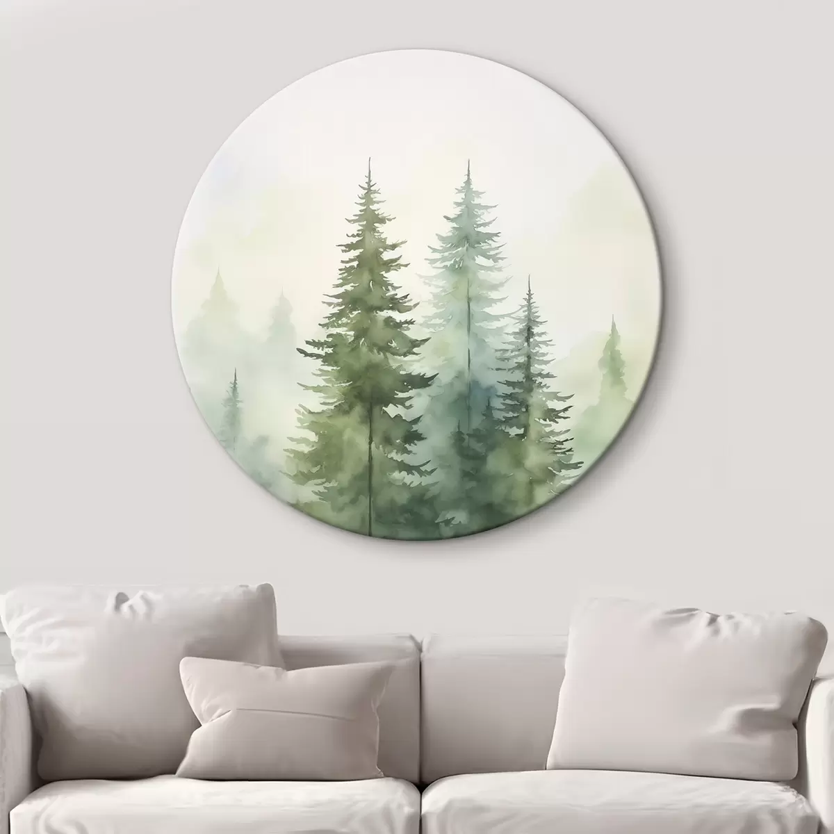 Ronde schilderijen Dennenbomen in de mist Nr r45208