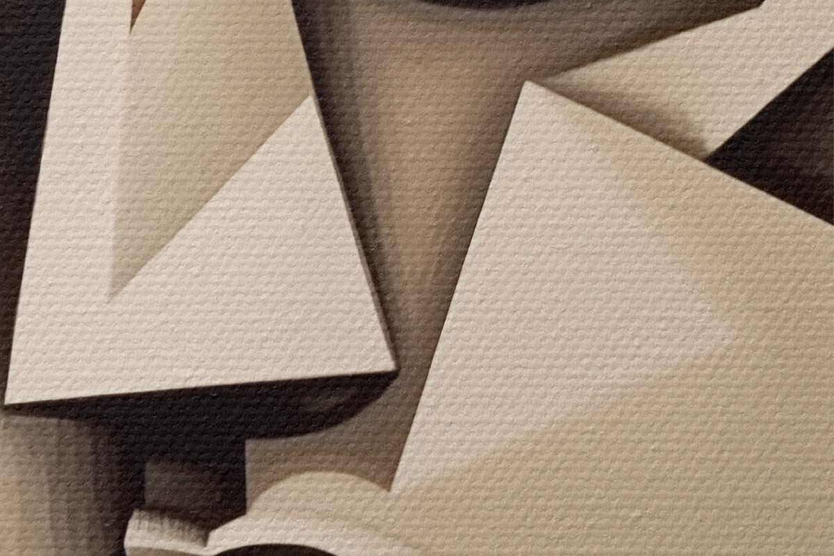 De fijne weving van draden op dit doek lijkt op het oppervlak van professionele schildersdoeken.