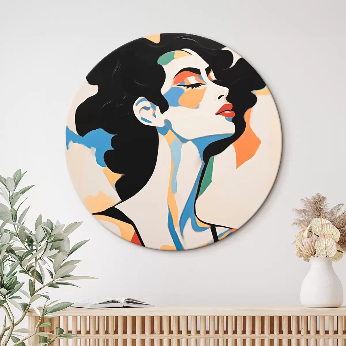 Ronde schilderijen Abstract portret van een vrouw met imitatie van penseelstreken Nr r45233