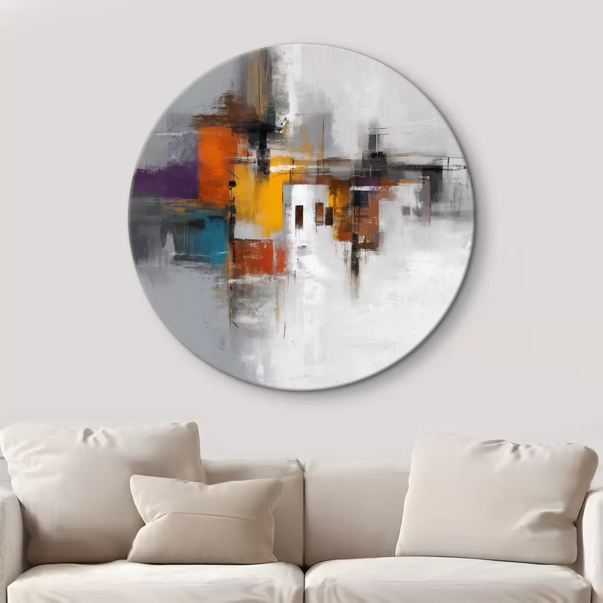 Ronde schilderijen Kleurrijke abstractie met geometrische motieven r45239