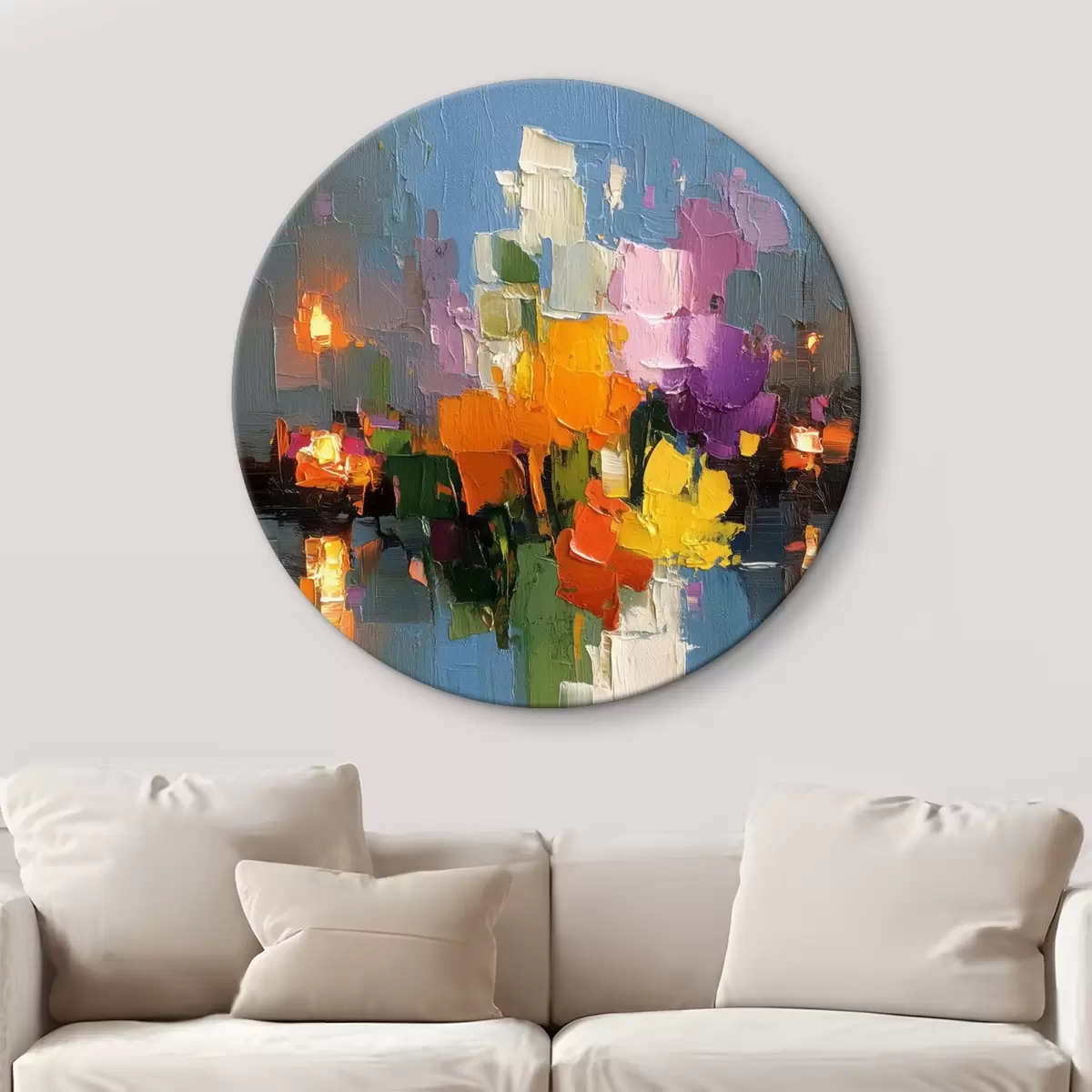 Ronde schilderijen Stedelijke abstractie: reflectie van licht in water Nr r45243