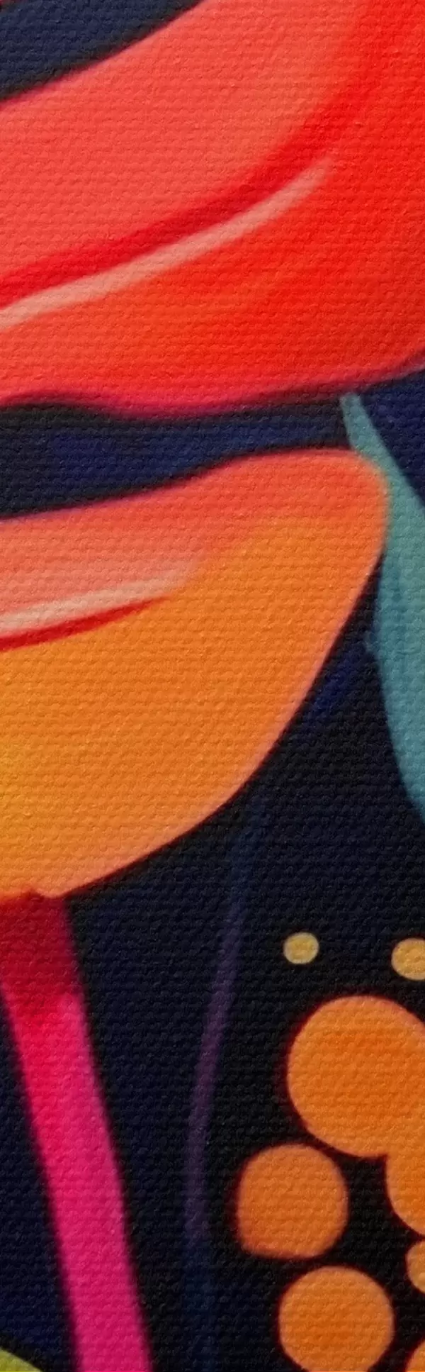 Het schilderij kan direct na ontvangst worden opgehangen. Het schilderij wordt opgespannen op een 2 cm breed houten spieraam.