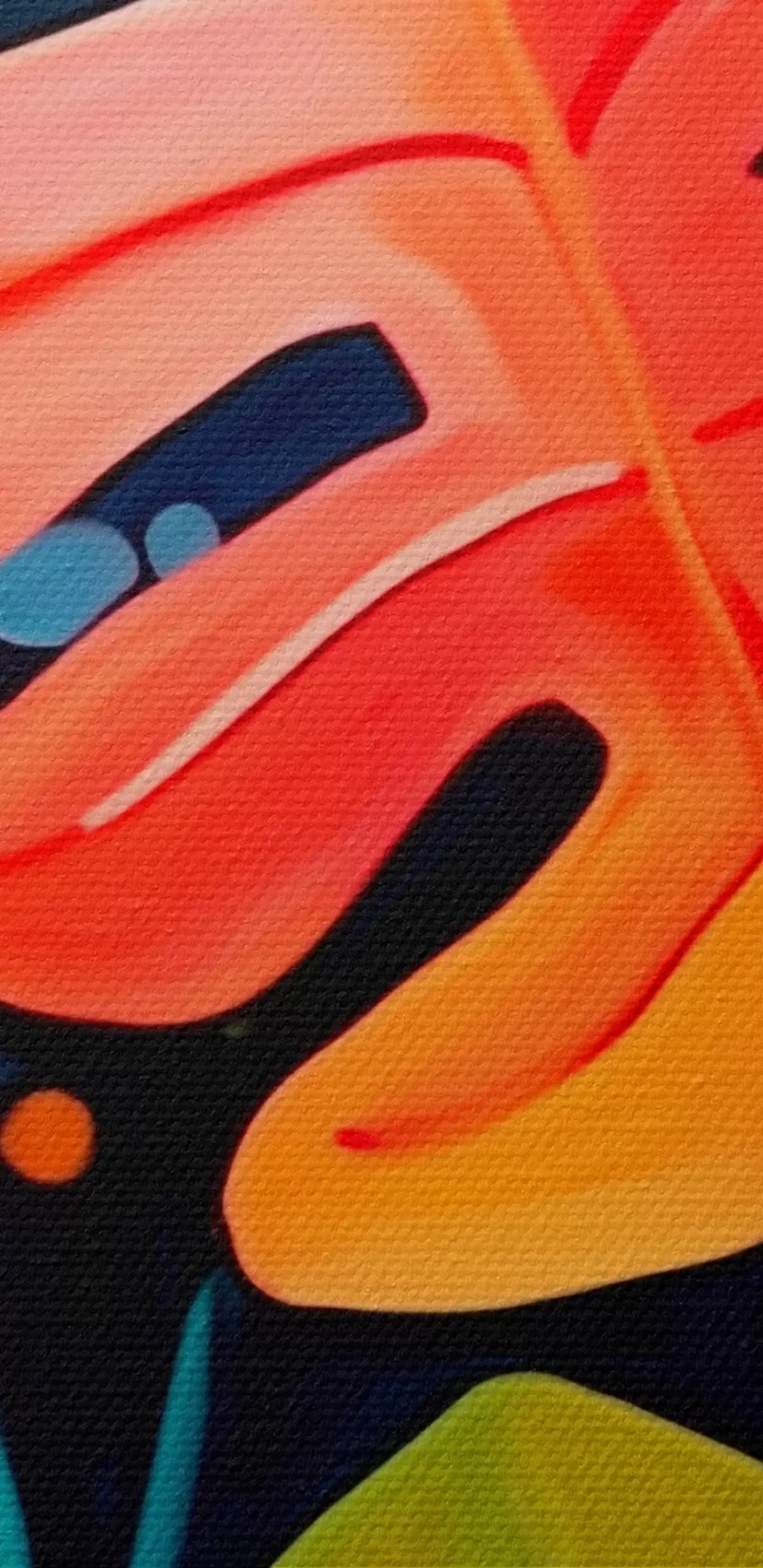 Het schilderij kan direct na ontvangst worden opgehangen. Het schilderij wordt opgespannen op een 2 cm breed houten spieraam.