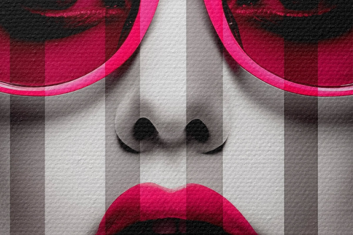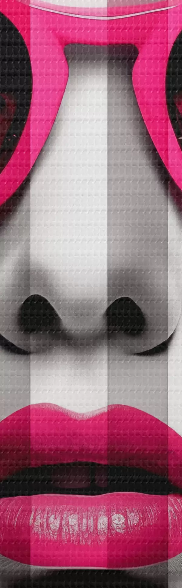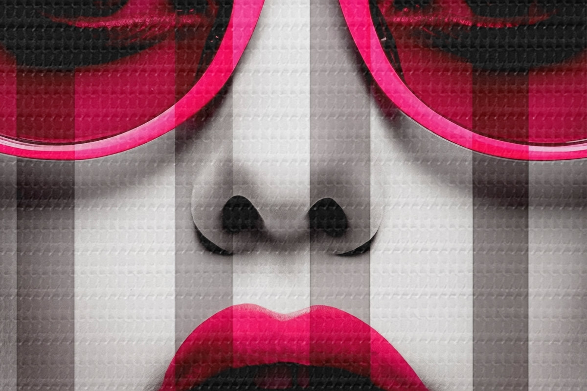 Ronde schilderijen Vrouw met roze bril met zwarte en witte strepen Nr r45315