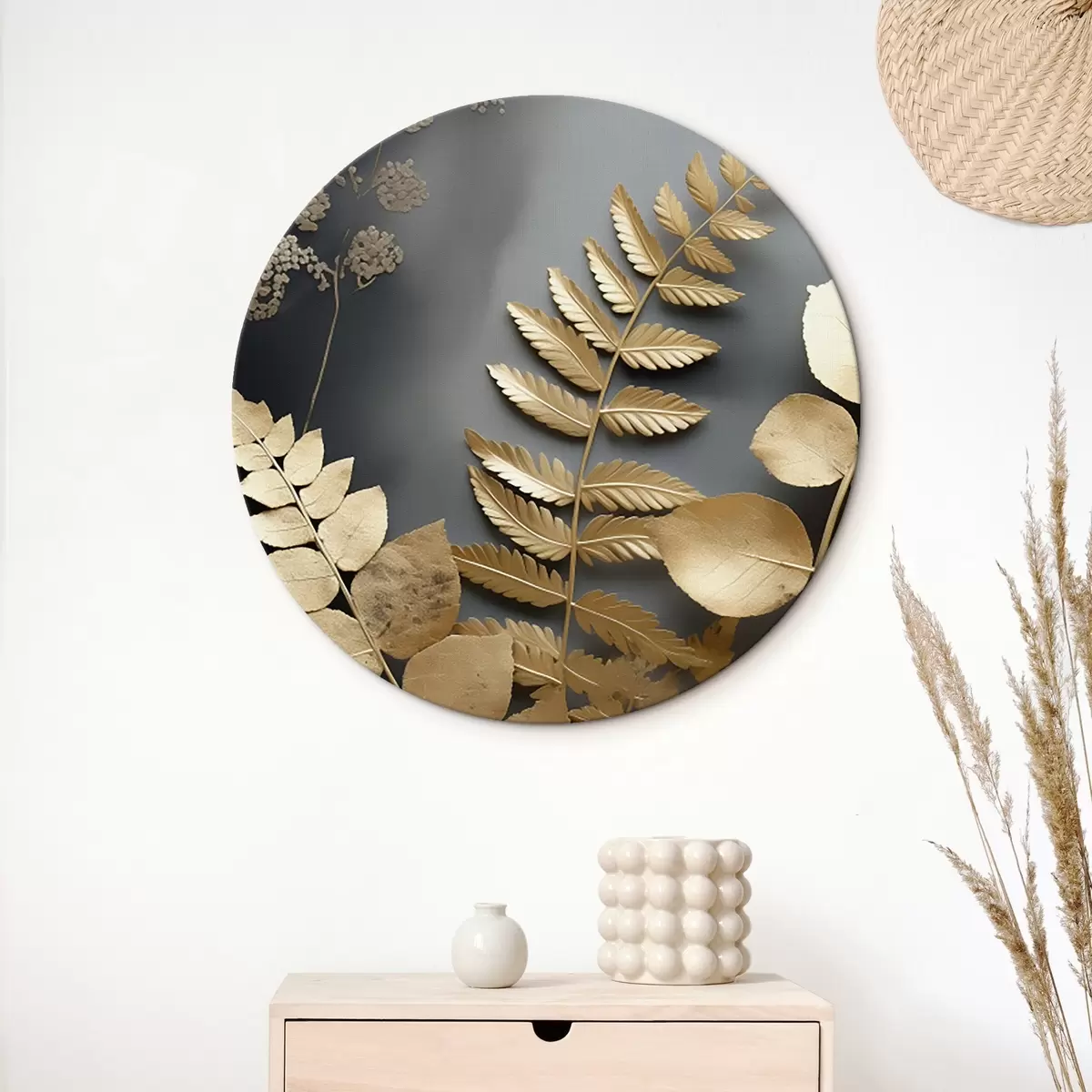 Ronde schilderijen Eucalyptus takken en tropische bladeren op een donkere achtergrond Nr r45333