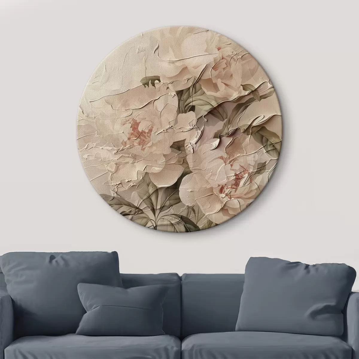 Ronde schilderijen Weelderig boeket pioenrozen in aquarelstijl op een lichte achtergrond Nr r45336