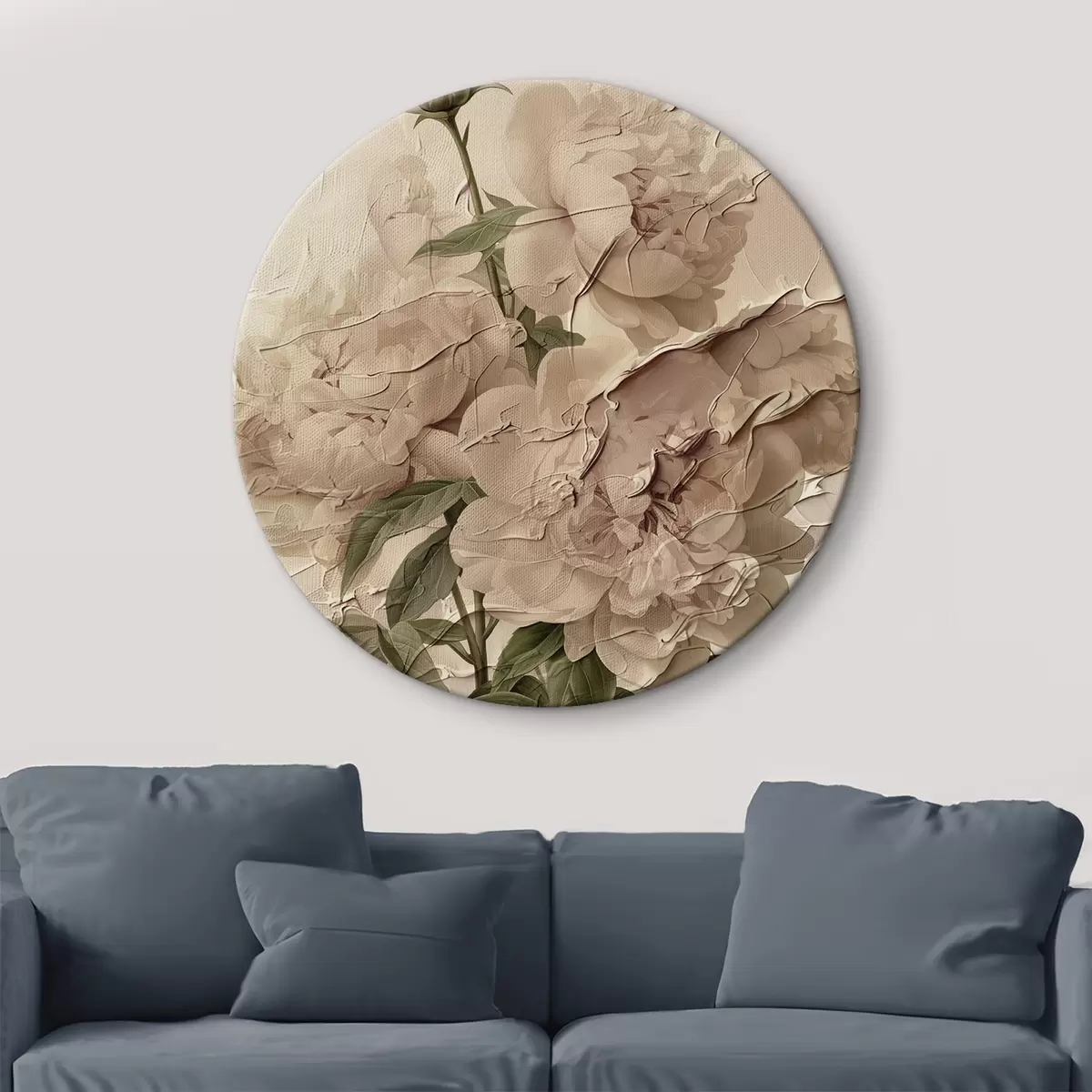 Ronde schilderijen Weelderig boeket pioenrozen op een lichte achtergrond Nr r45337