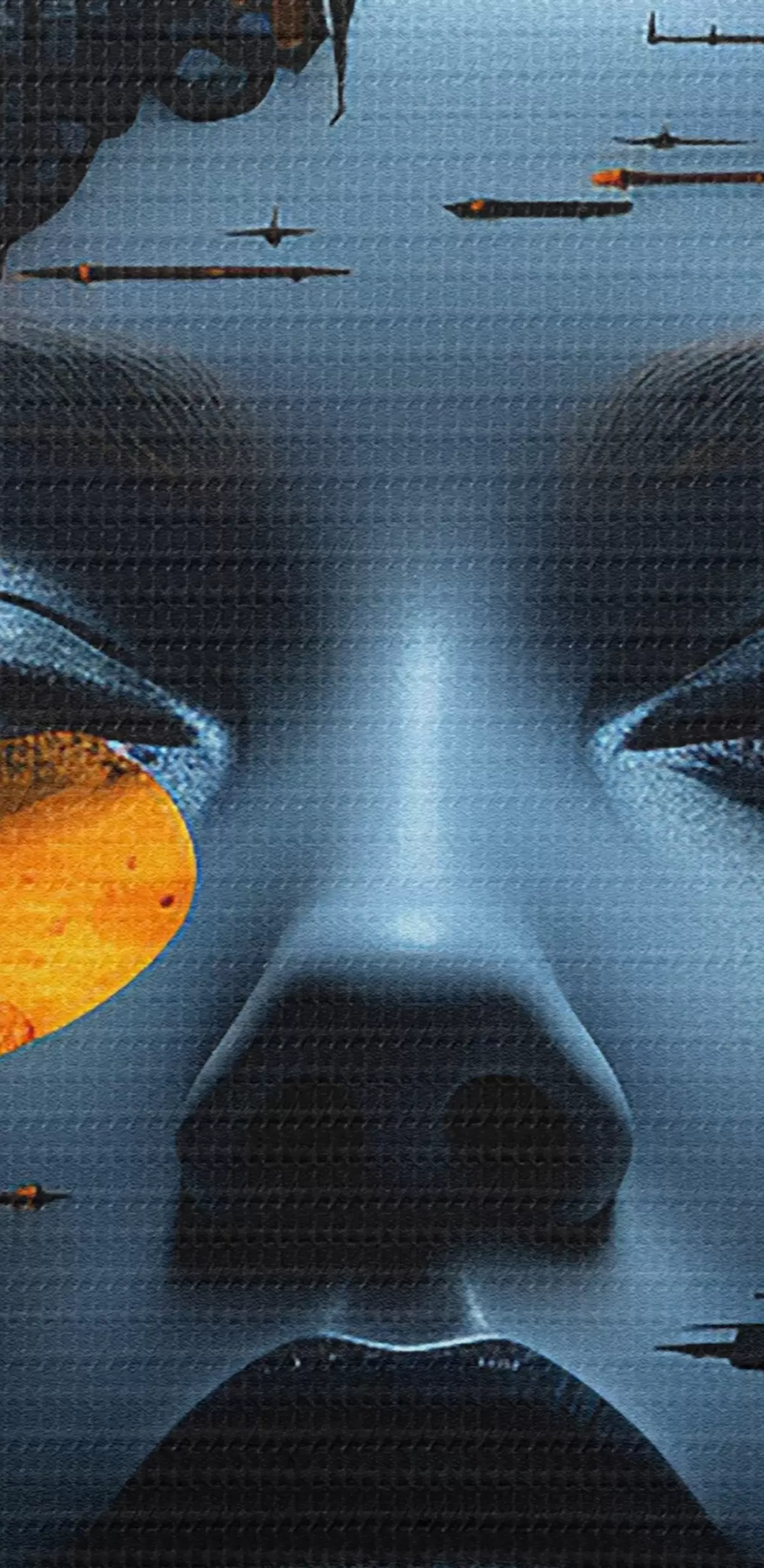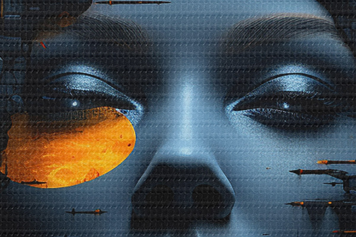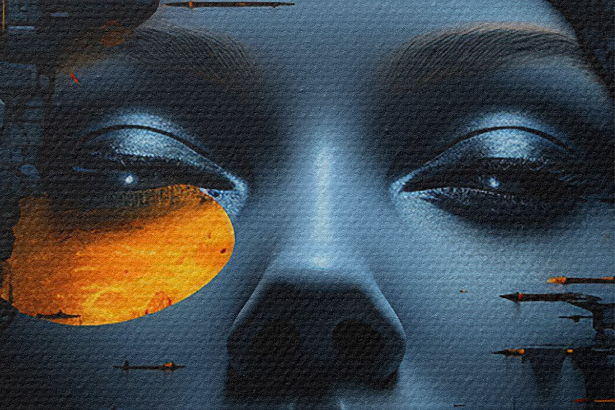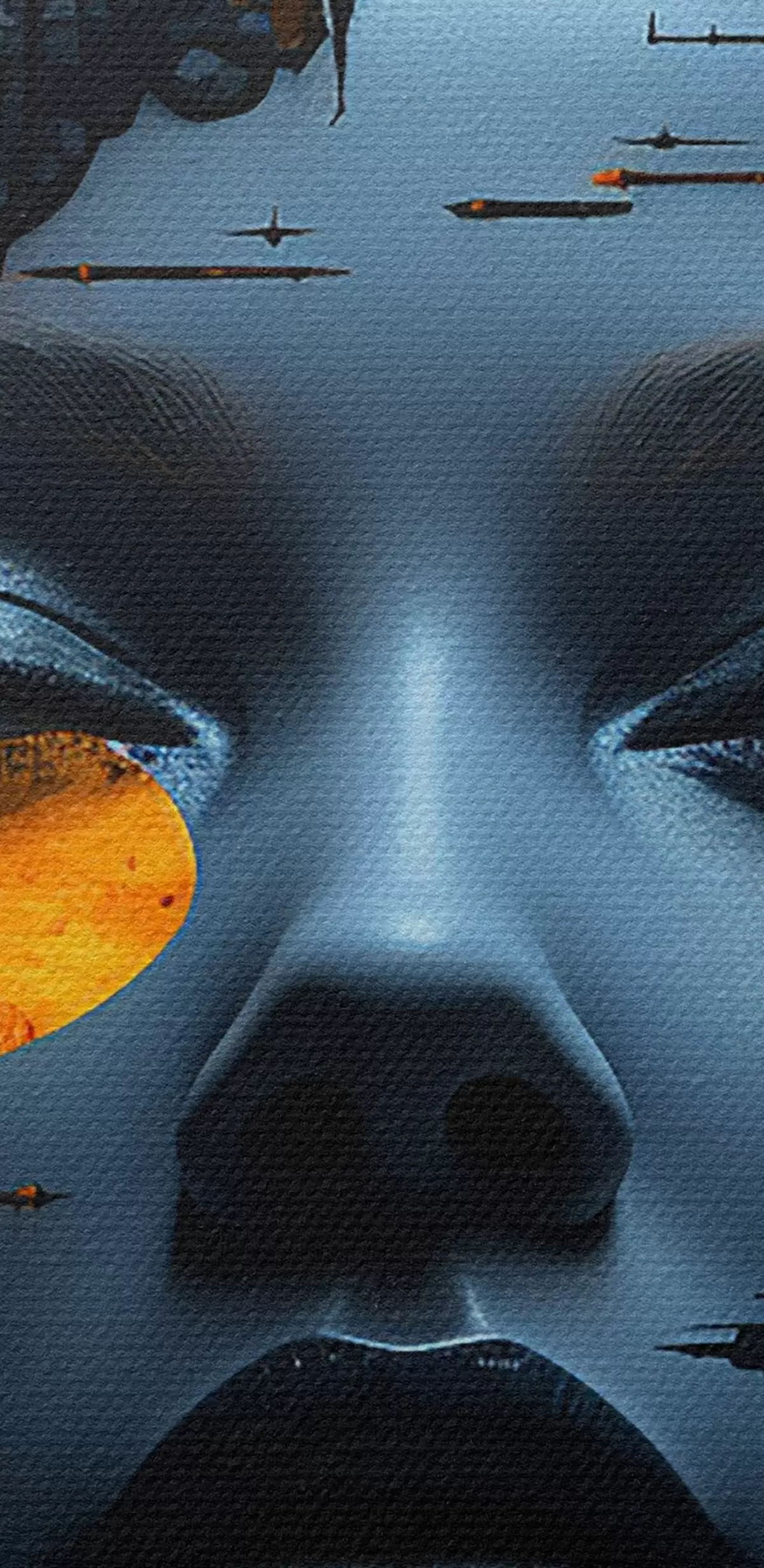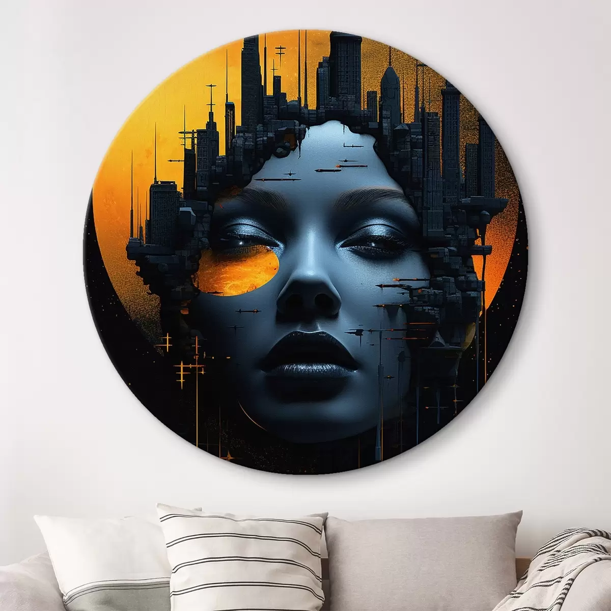 Ronde schilderijen Mensen, meisjesgezicht op een stadsachtergrond, abstract Nr r45341