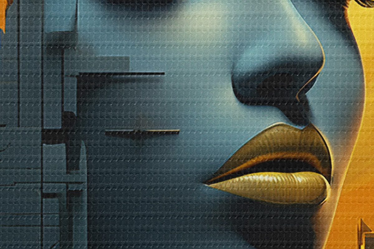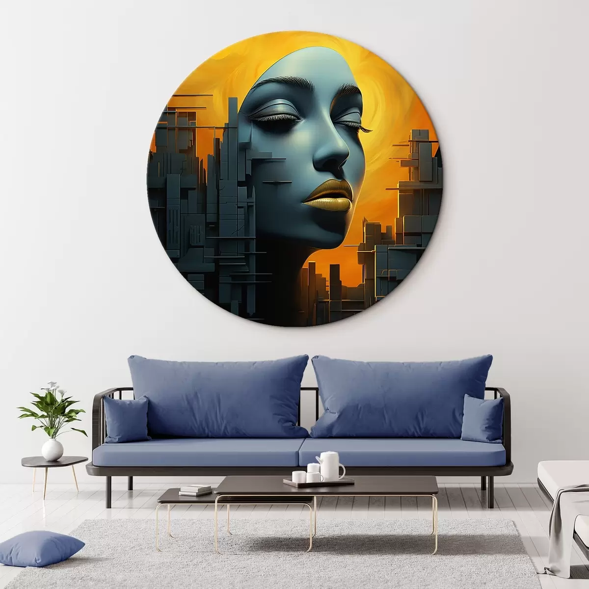 Ronde schilderijen Mensen, de stad van het meisjesgezicht op een abstracte achtergrond Nr r45342