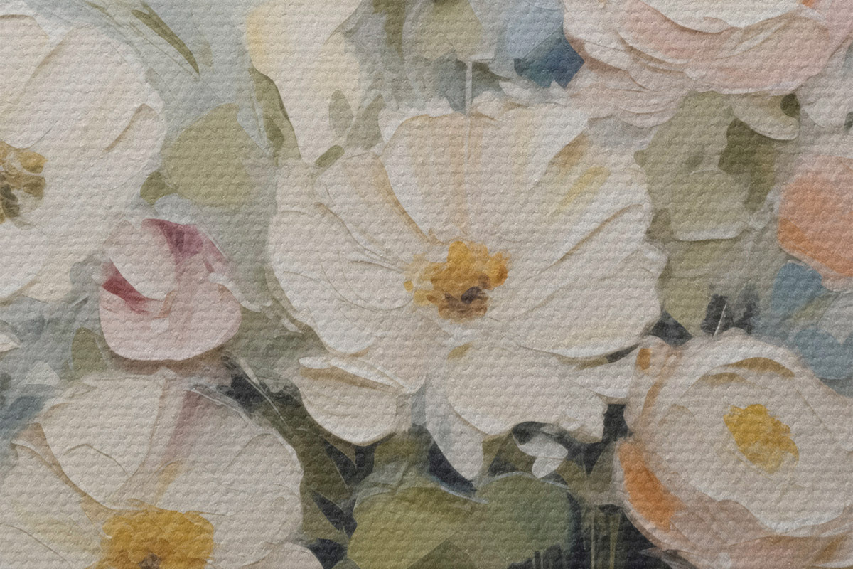 Er zijn drie soorten materiaal te bestellen: Economic Canvas - een dicht en duurzaam materiaal voor digitaal printen, identiek aan schildersdoek, waterdicht oppervlak, realistische weergave van details, materiaal met gemiddelde korrel. Premium Canvas - de textuur lijkt op die van schildersdoek (verweven kleine draden). Zachte, gedetailleerde reproductie van de afbeelding op een mat oppervlak. Eco-Premium - hoogwaardige 100% katoenen stof. Dankzij de natuurlijke katoenvezels is het materiaal duurzaam en slijtvast. Uitstekende kleurweergave en detail.