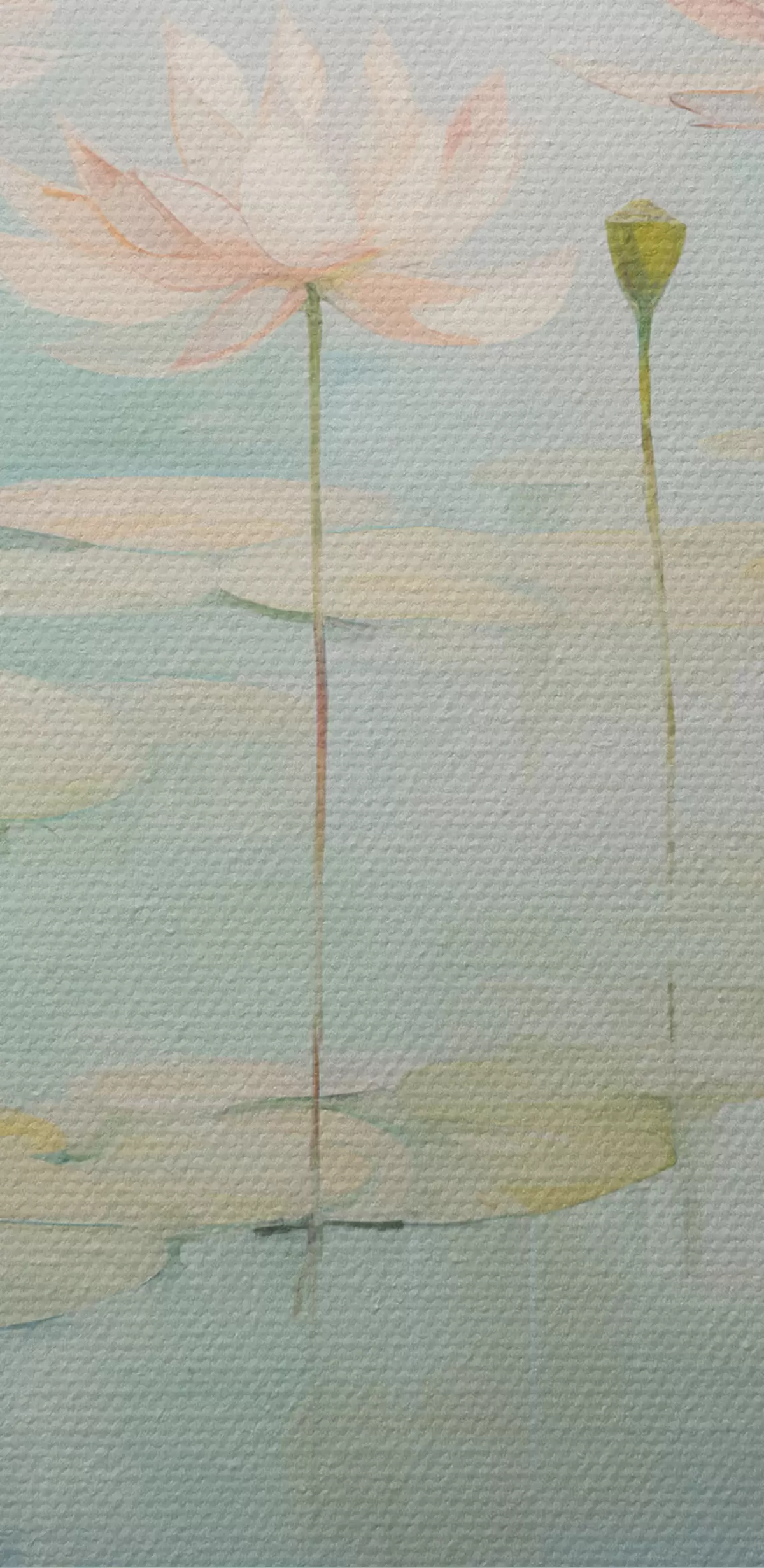 Ronde schilderijen Lotusbladeren en bloemen op de vijver Nr r45350