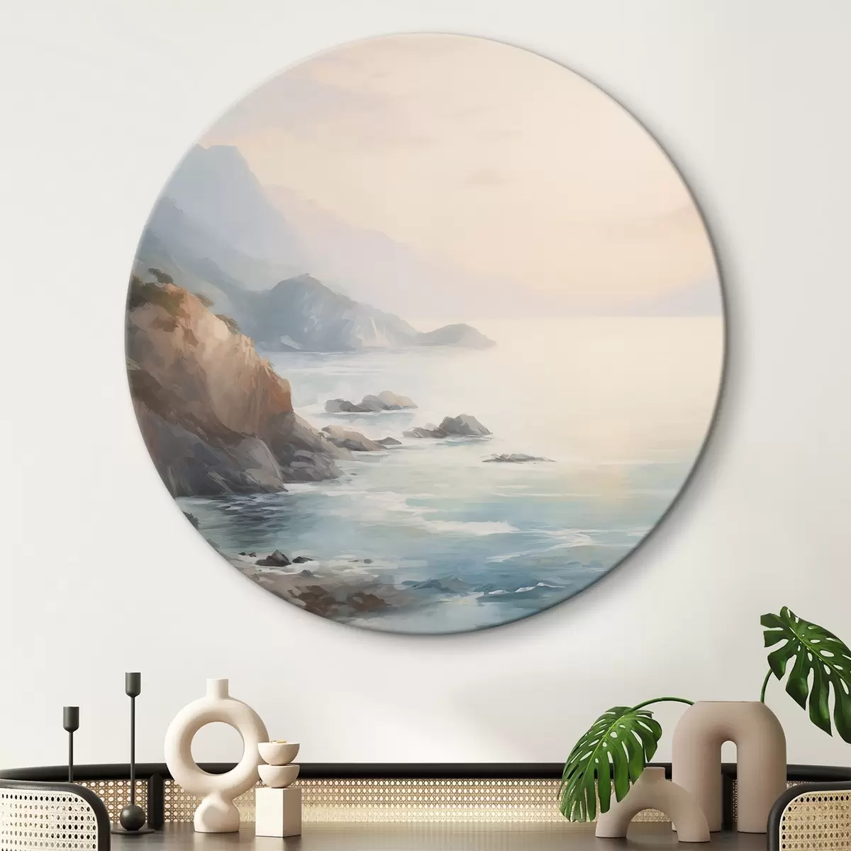 Ronde schilderijen Meer bij de rotsen r45351