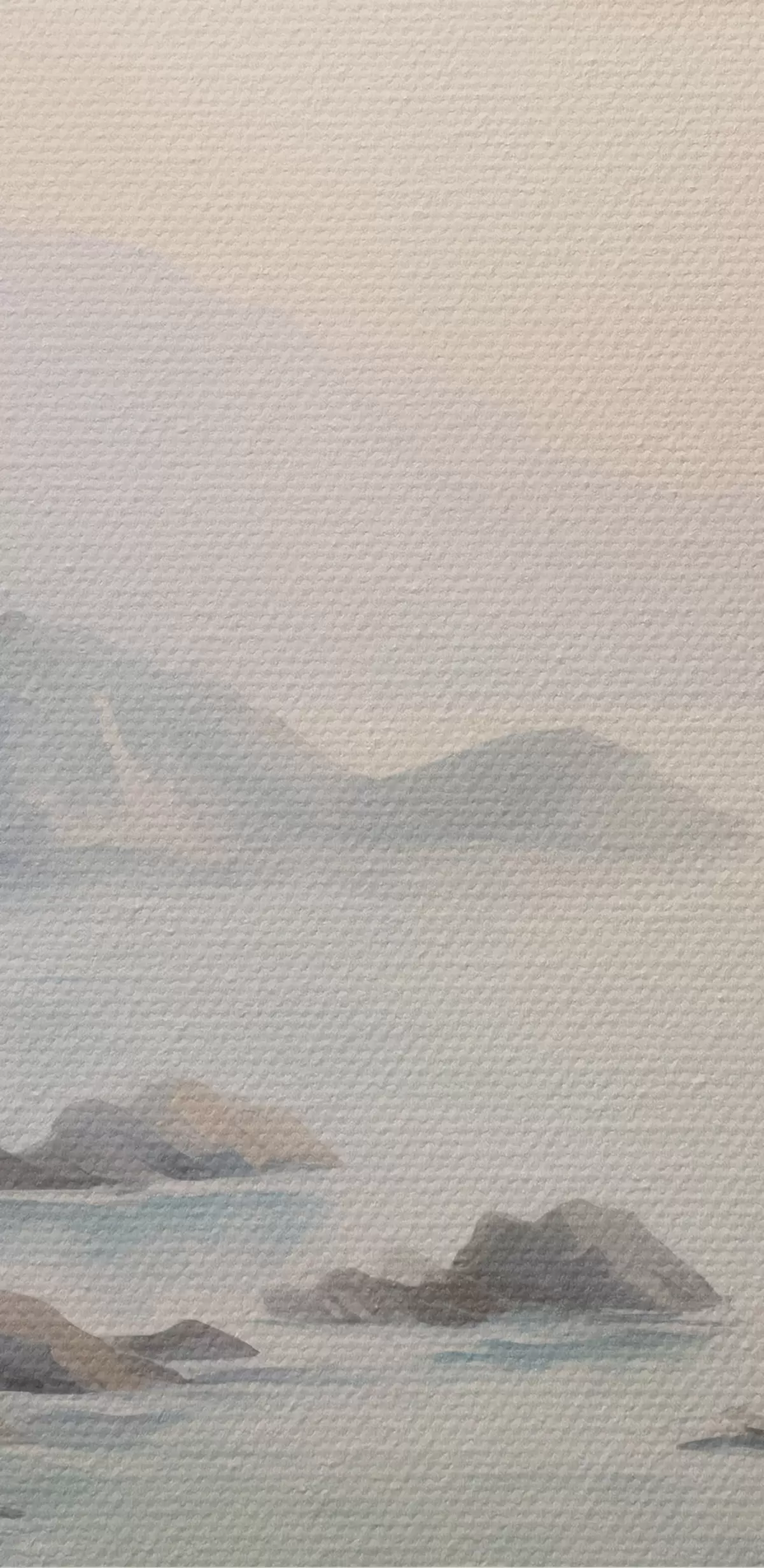 Het schilderij kan direct na ontvangst worden opgehangen. Het schilderij wordt opgespannen op een 2 cm breed houten spieraam.