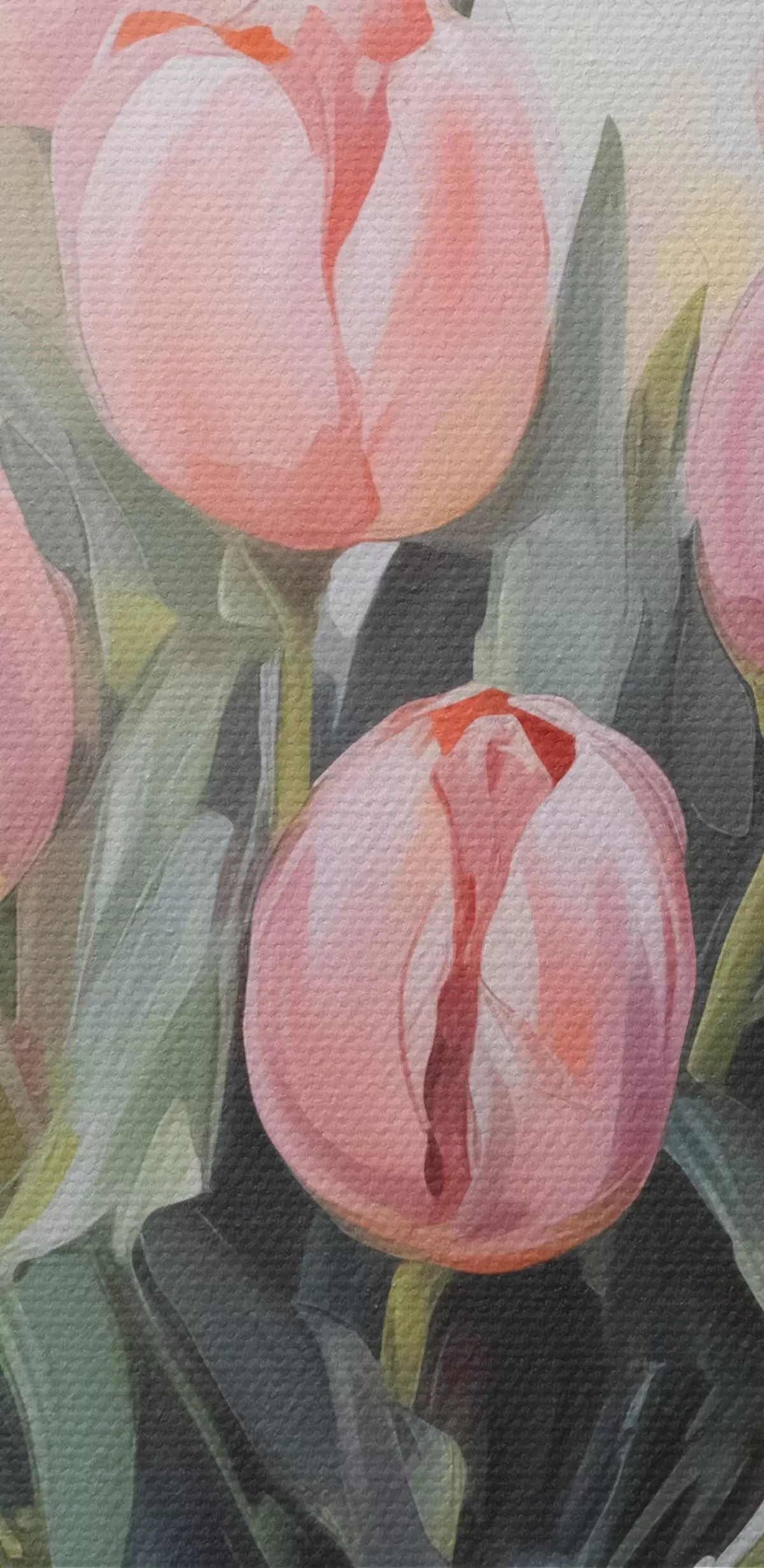 Het schilderij kan direct na ontvangst worden opgehangen. Het schilderij wordt opgespannen op een 2 cm breed houten spieraam.