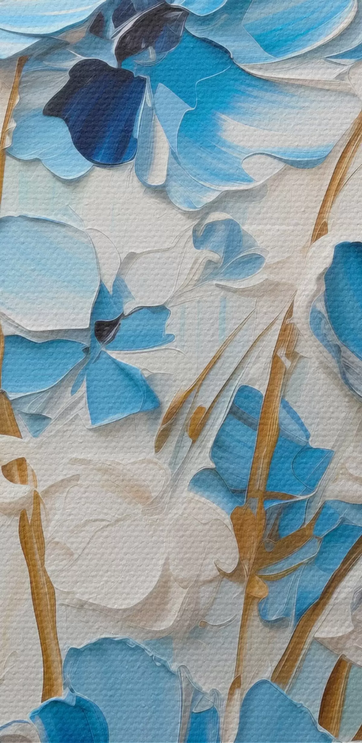 Het schilderij kan direct na ontvangst worden opgehangen. Het schilderij wordt opgespannen op een 2 cm breed houten spieraam.
