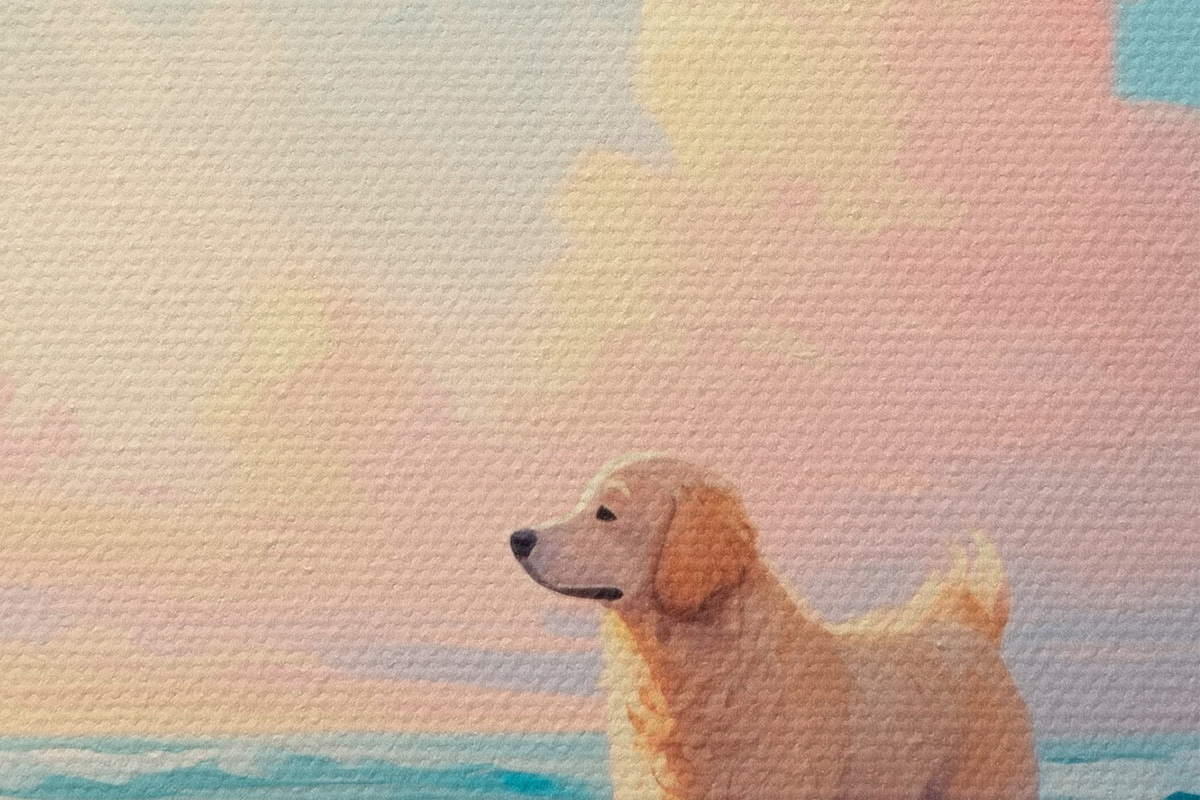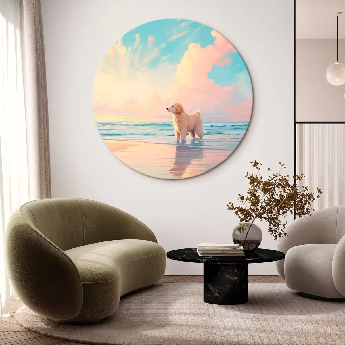 Ronde schilderijen Retriever aan de kust r45425