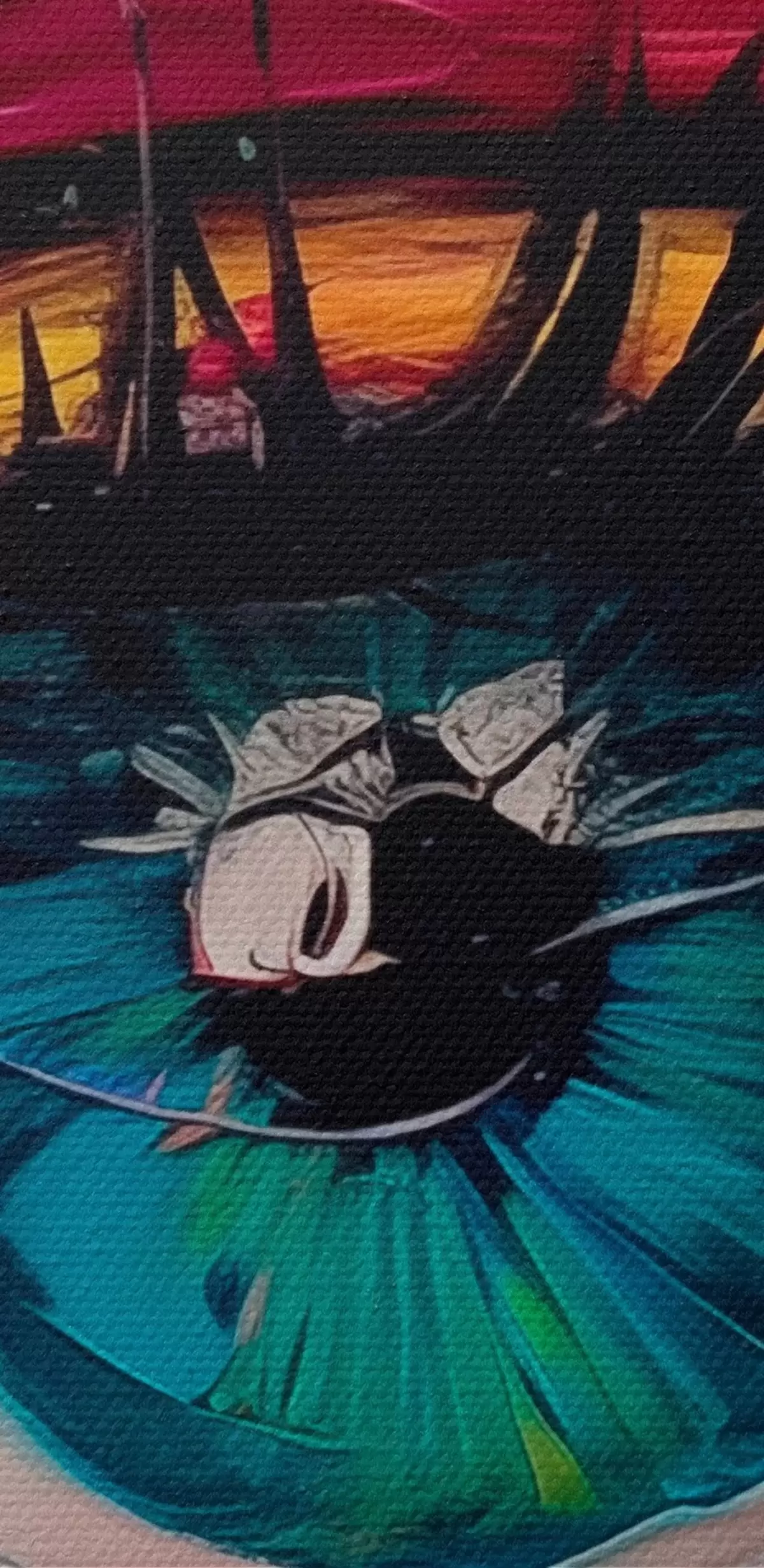 Het schilderij kan direct na ontvangst worden opgehangen. Het schilderij wordt opgespannen op een 2 cm breed houten spieraam.