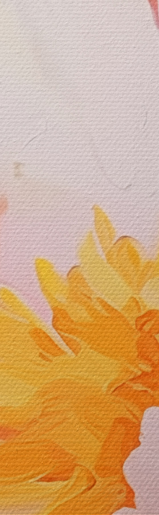 Het schilderij kan direct na ontvangst worden opgehangen. Het schilderij wordt opgespannen op een 2 cm breed houten spieraam.