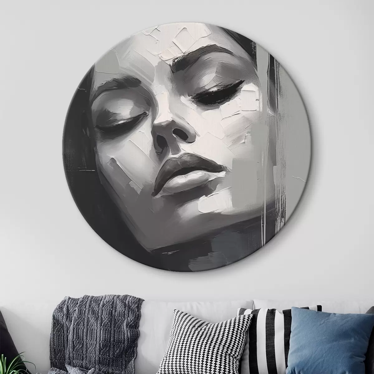 Ronde schilderijen Zwart-wit portret van een vrouw met gesloten ogen Nr r45479