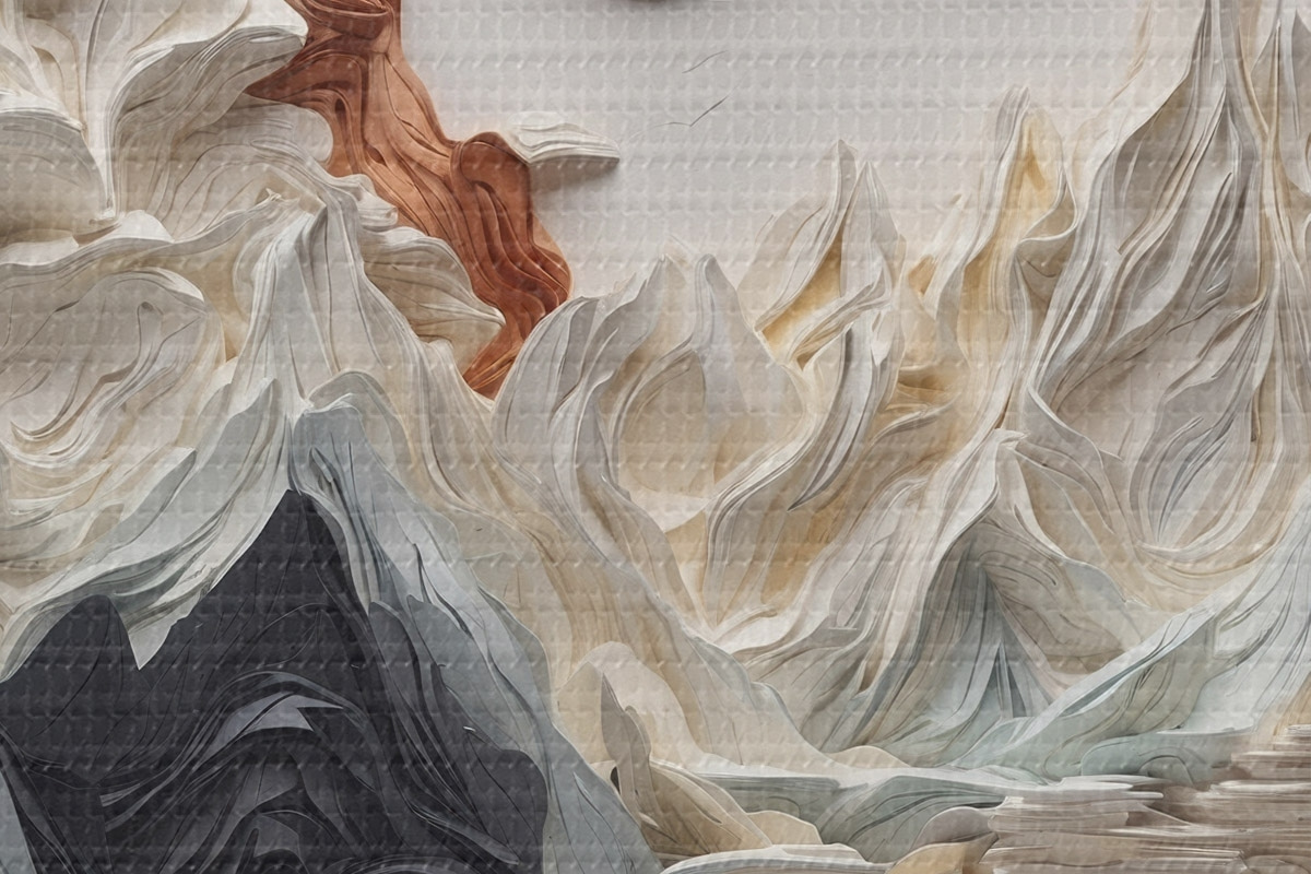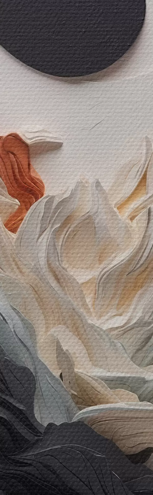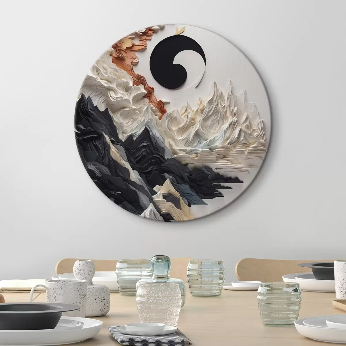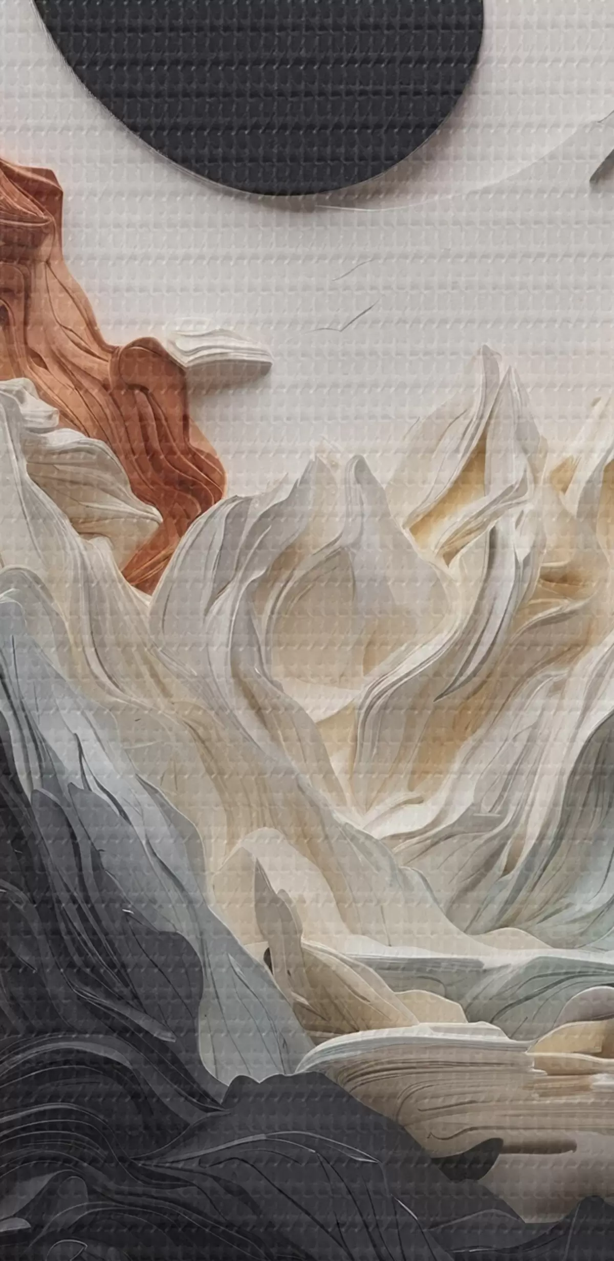 Ronde schilderijen Abstract landschap met bergen in een papieren stijl Nr r45482