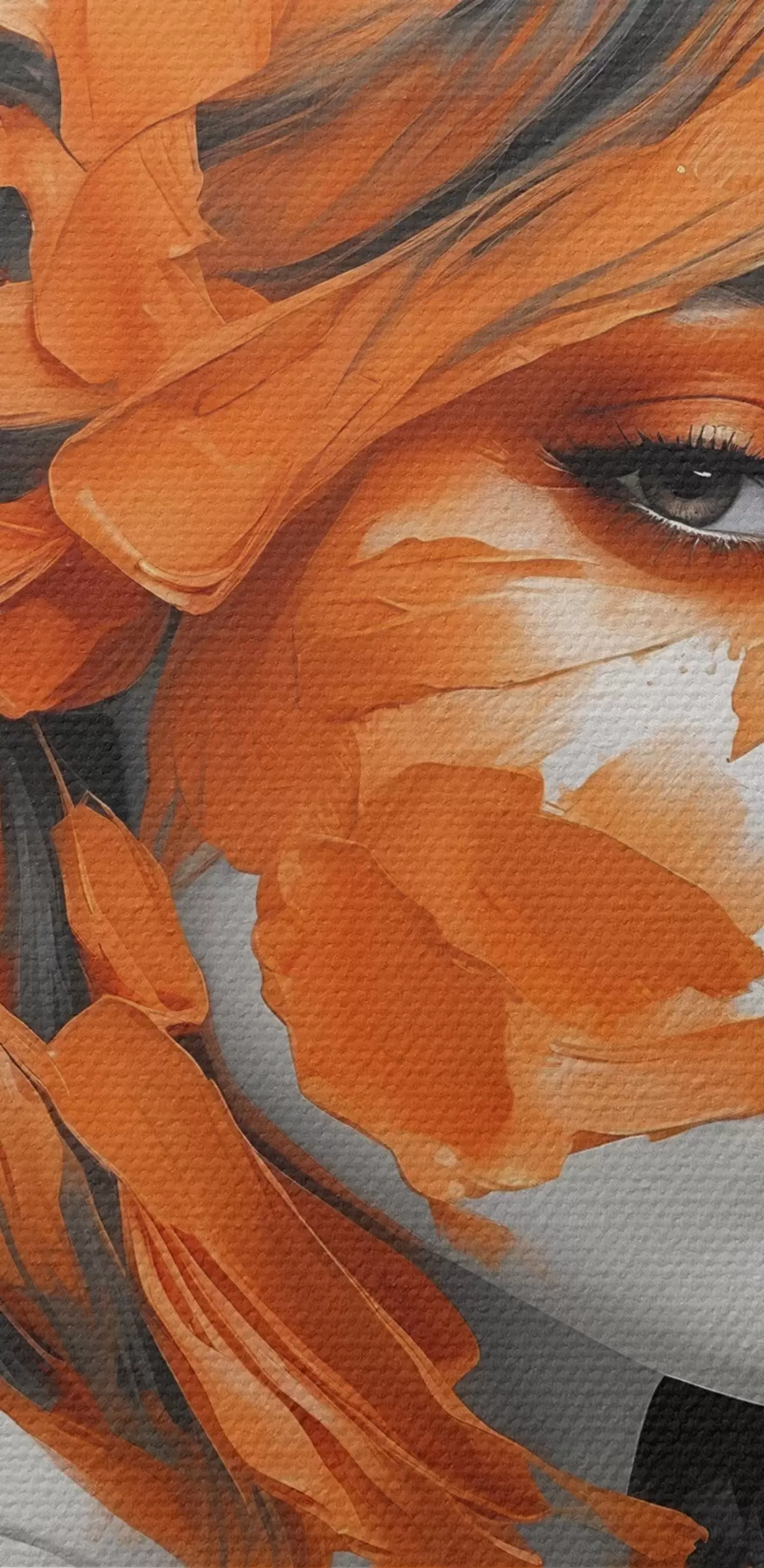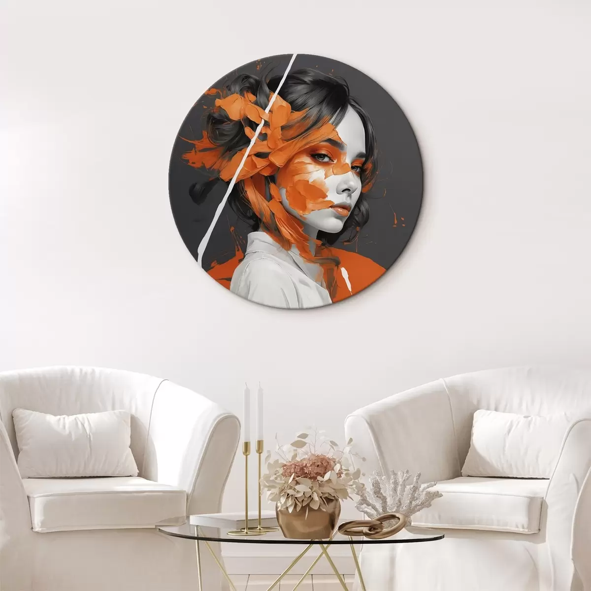 Ronde schilderijen Portret van een vrouw met oranje penseelstreken Nr r45489