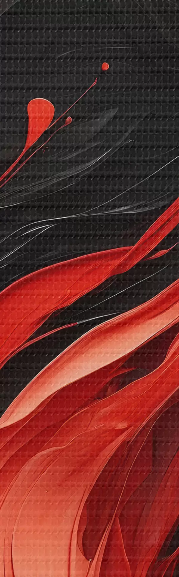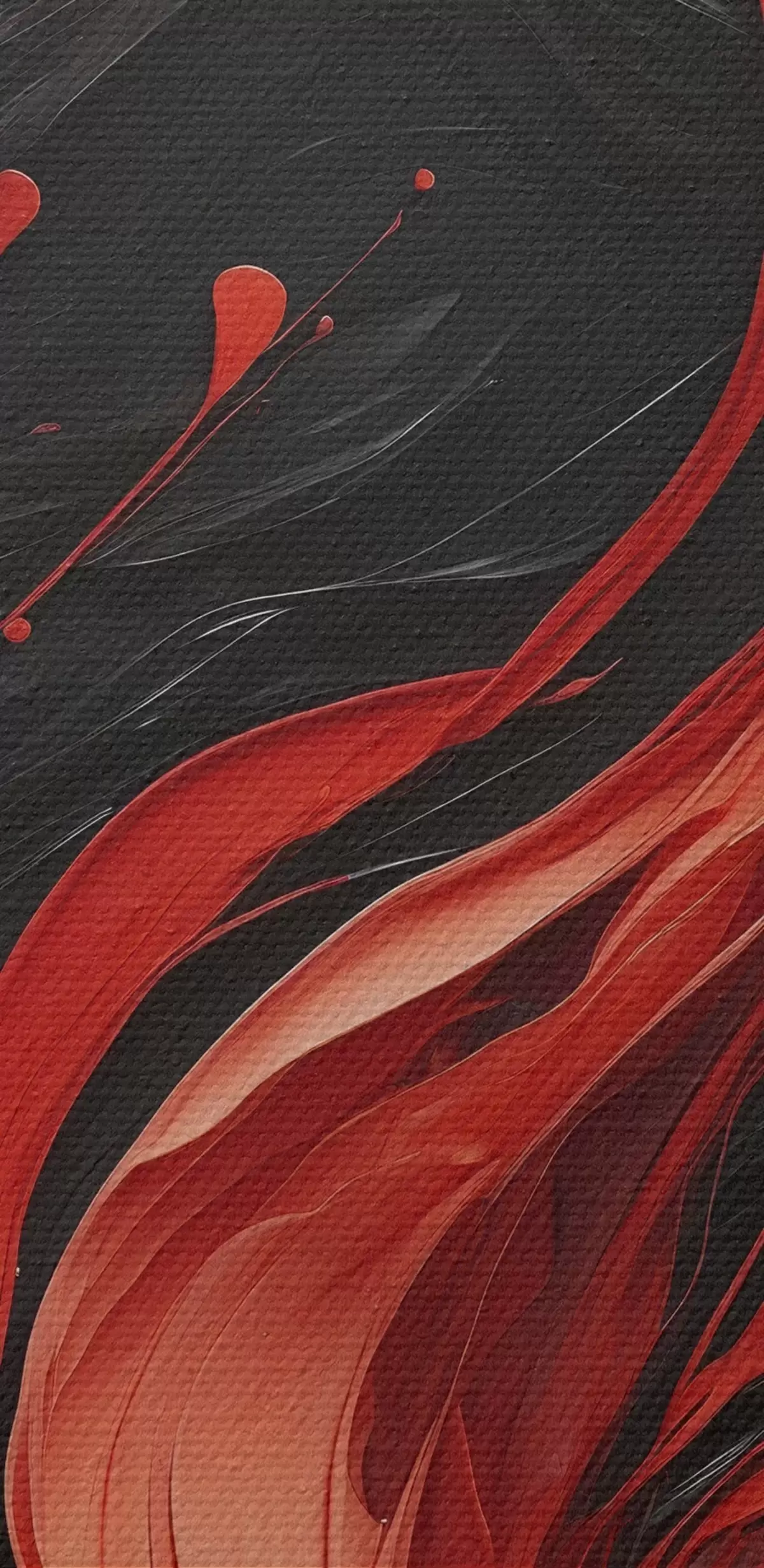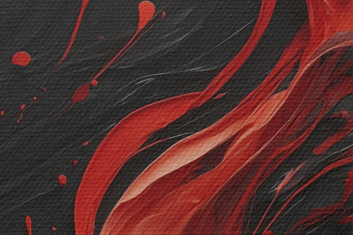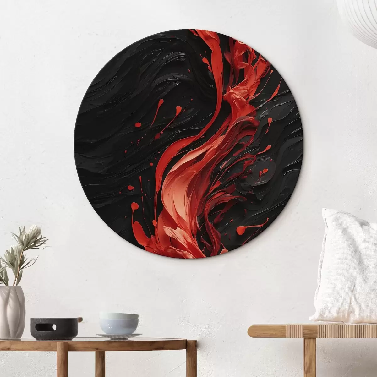 Ronde schilderijen Abstract met rode penseelstreken op zwarte achtergrond Nr r45490