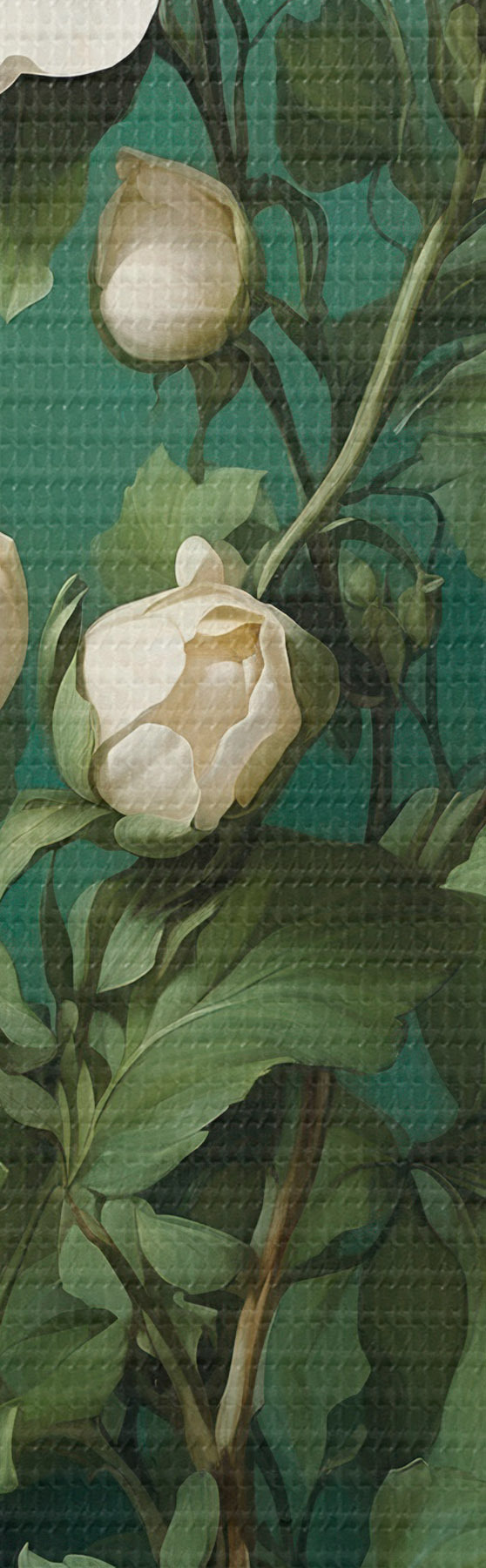 Ronde schilderijen Crème pioenbloemen op een groene achtergrond Nr r45491
