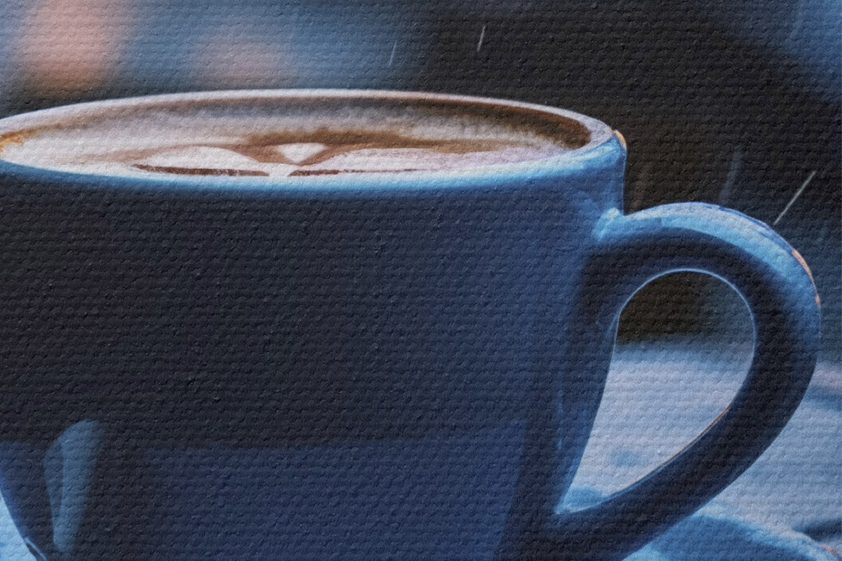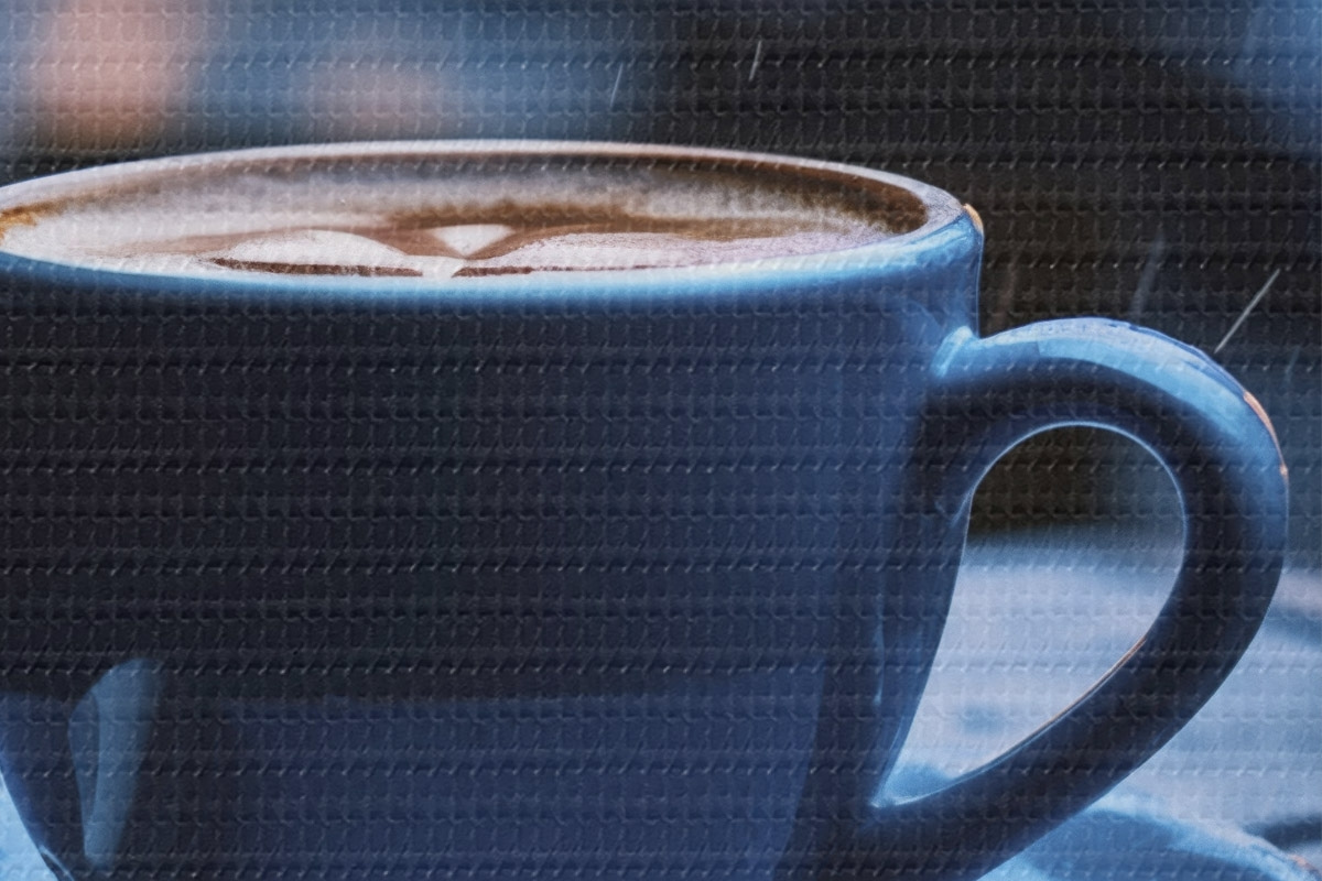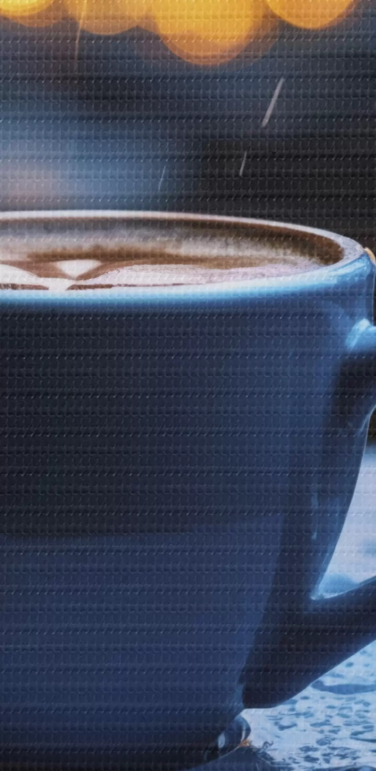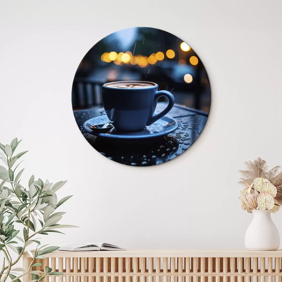 Ronde schilderijen Een kopje koffie op tafel in de regen Nr r45497