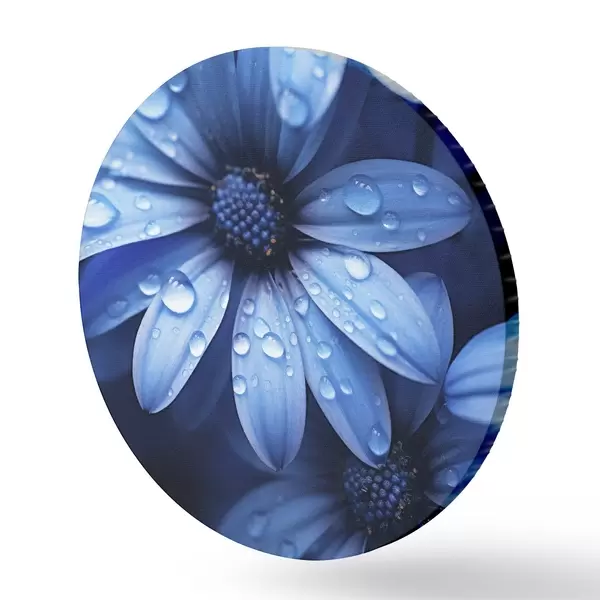 Ronde schilderijen Blauwe bloem met waterdruppels op de bloemblaadjes Nr r45499