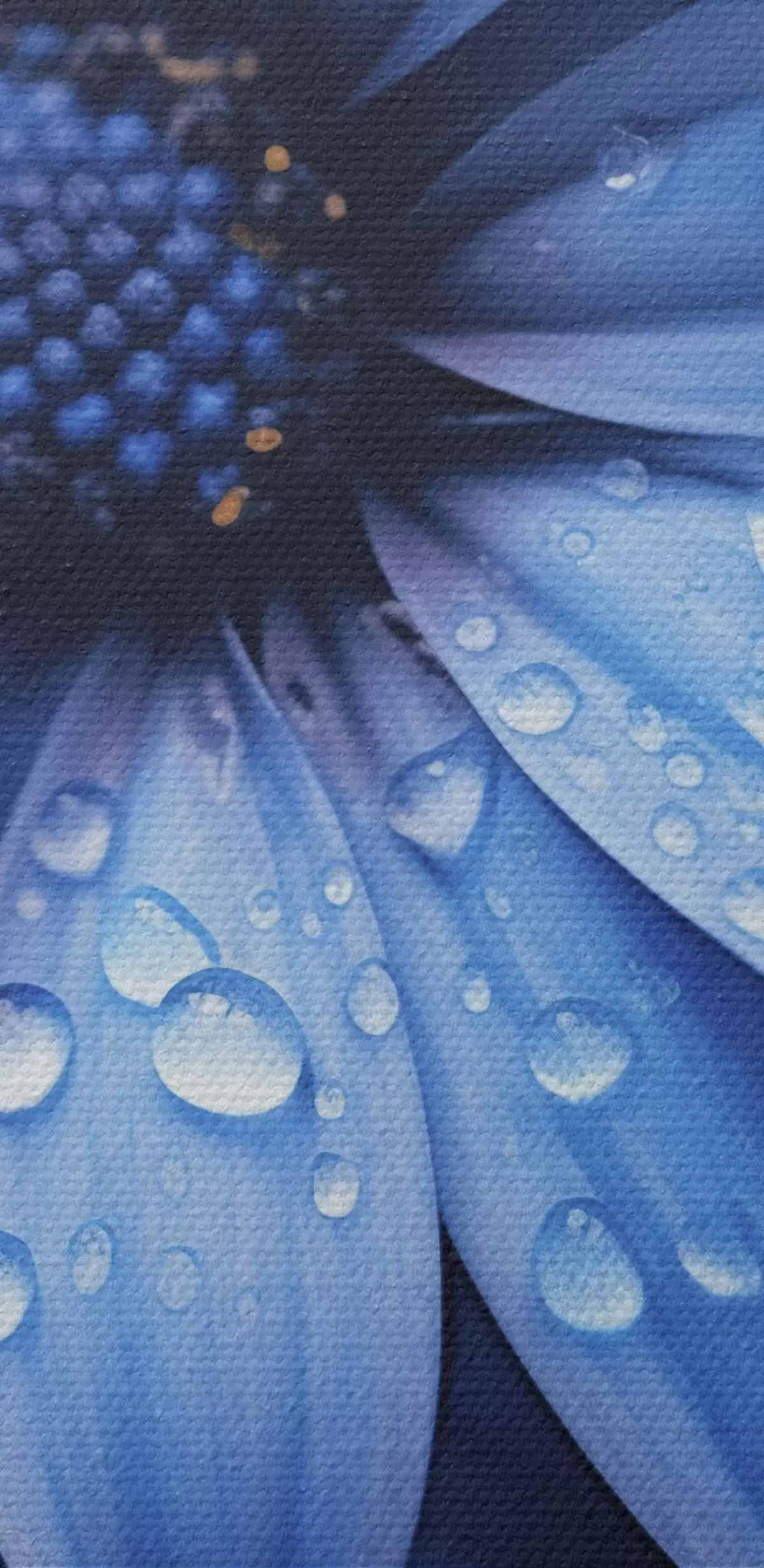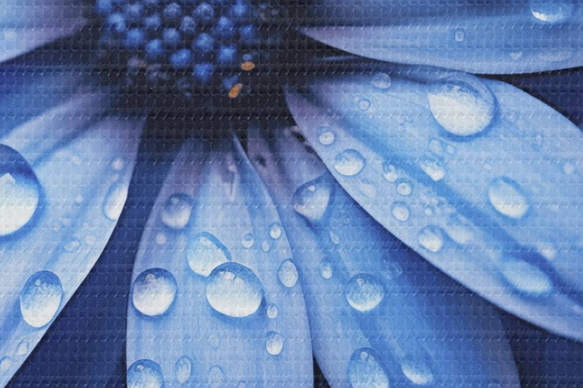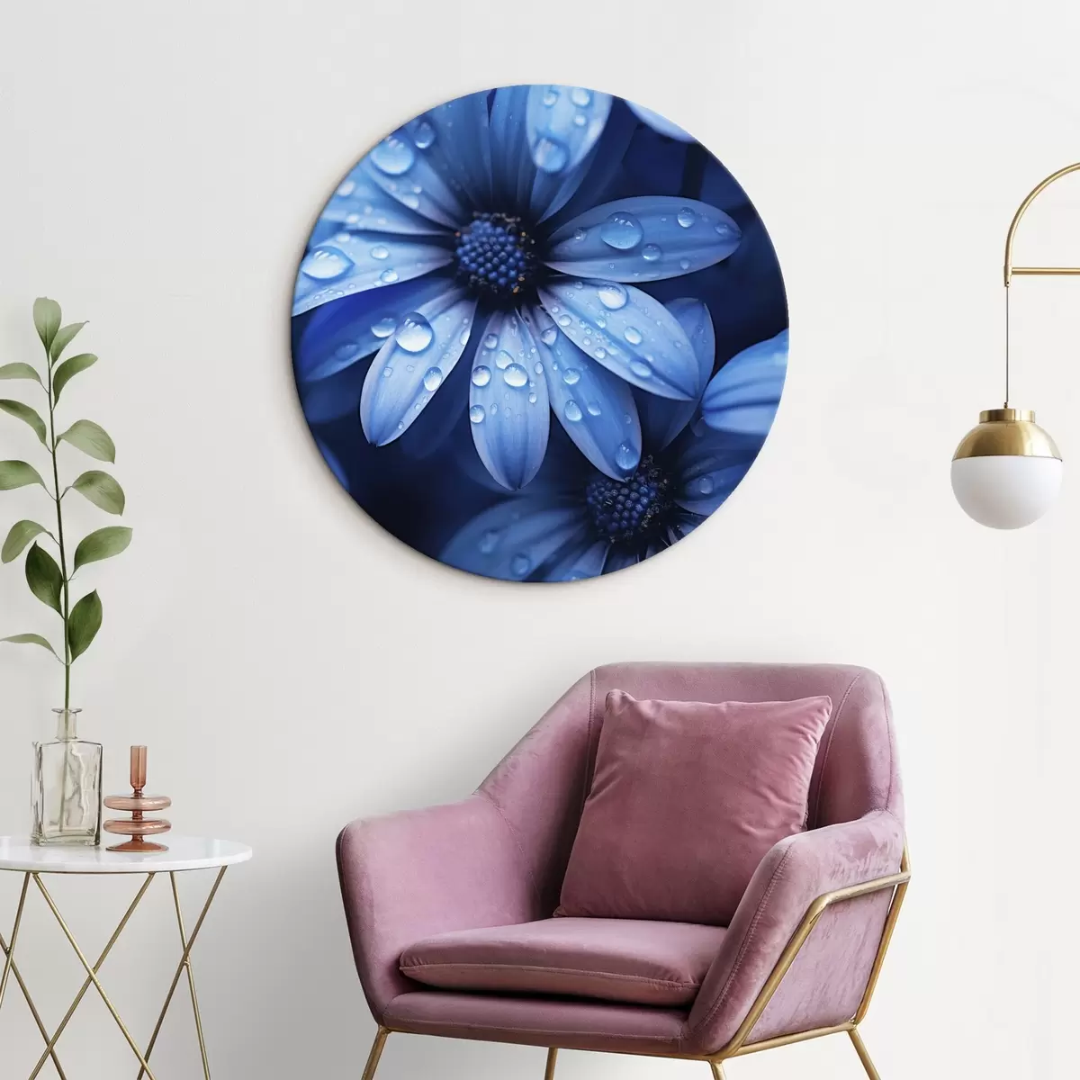 Ronde schilderijen Blauwe bloem met waterdruppels op de bloemblaadjes Nr r45499