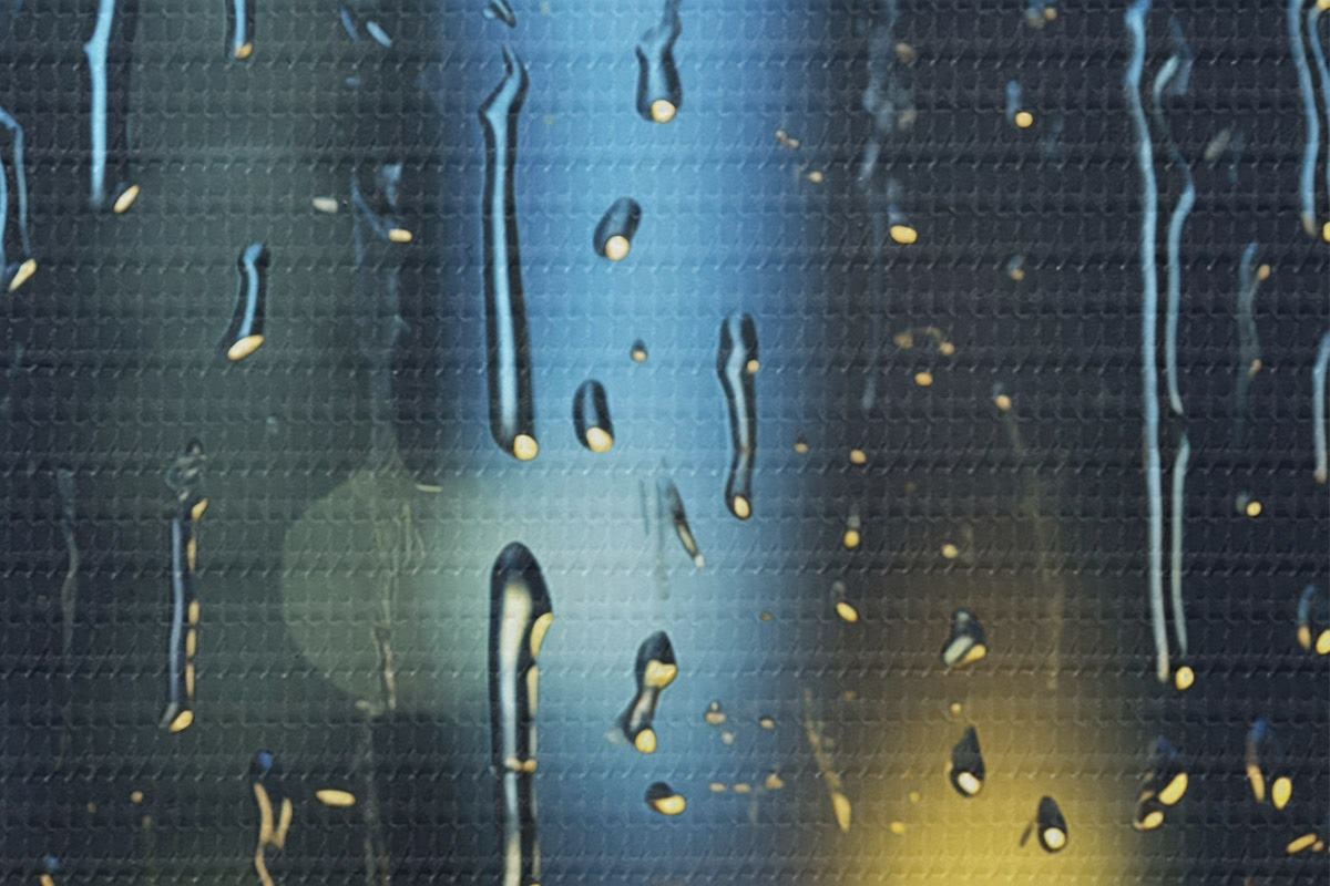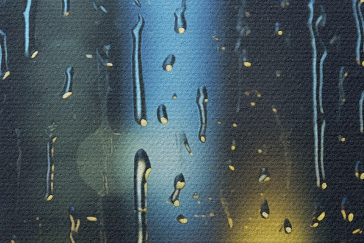 Ronde schilderijen Regendruppels op het raam met nachtlampjes Nr r45500