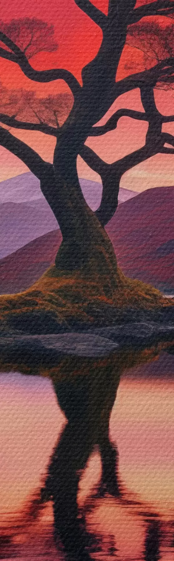Ronde schilderijen Grote boom bij zonsondergang Nr r45504