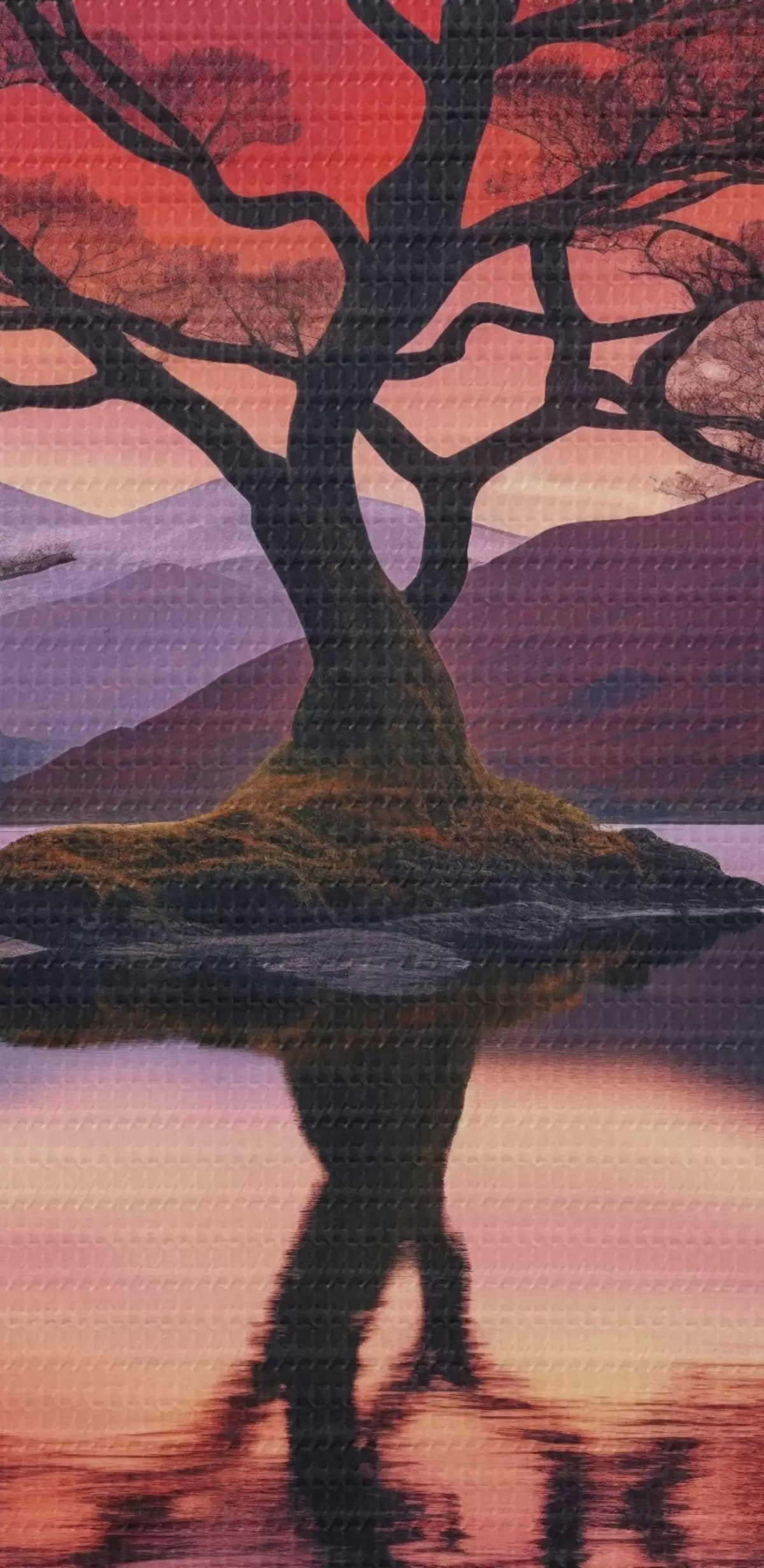 Ronde schilderijen Grote boom bij zonsondergang Nr r45504