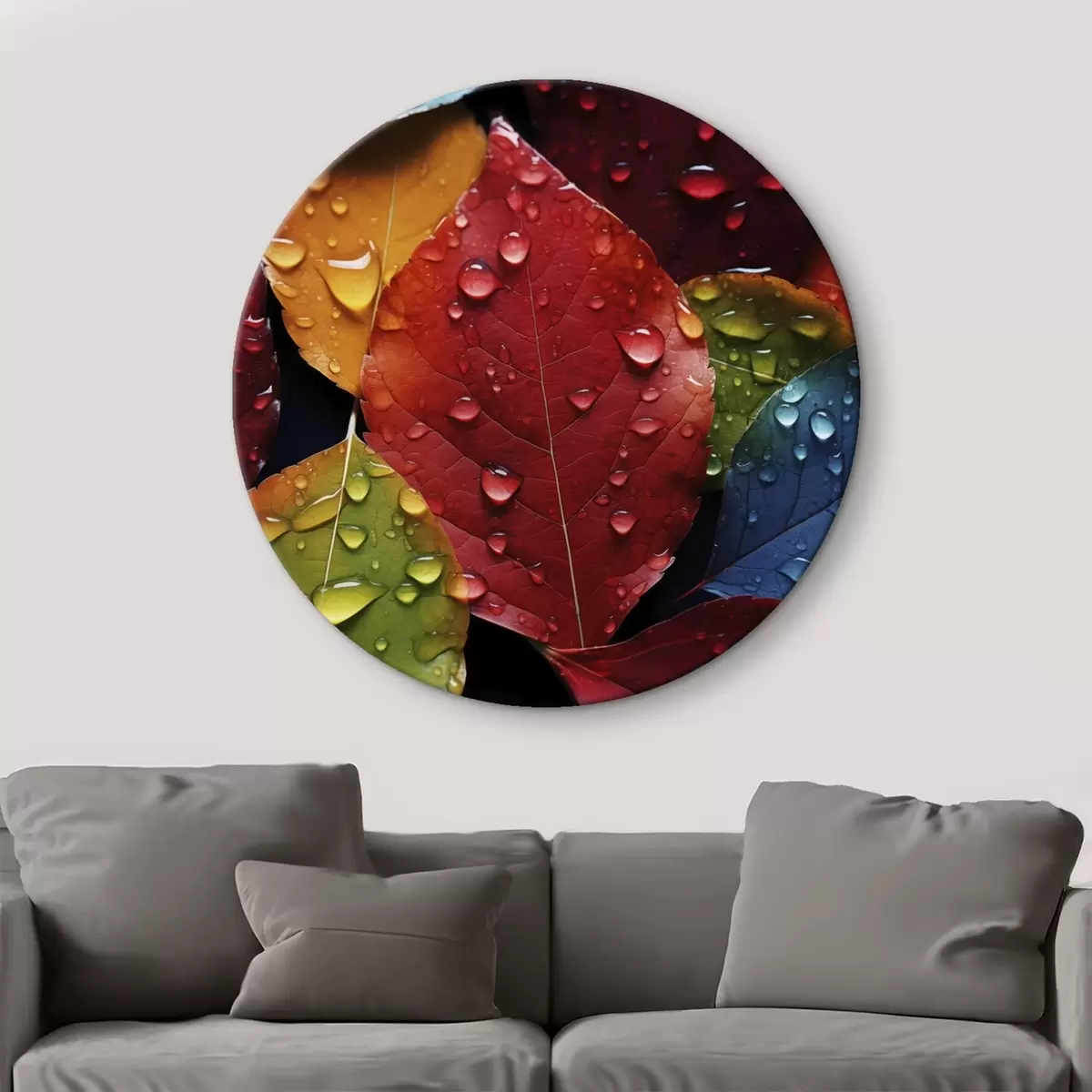 Ronde schilderijen Kleurrijke bladeren met waterdruppels Nr r45516