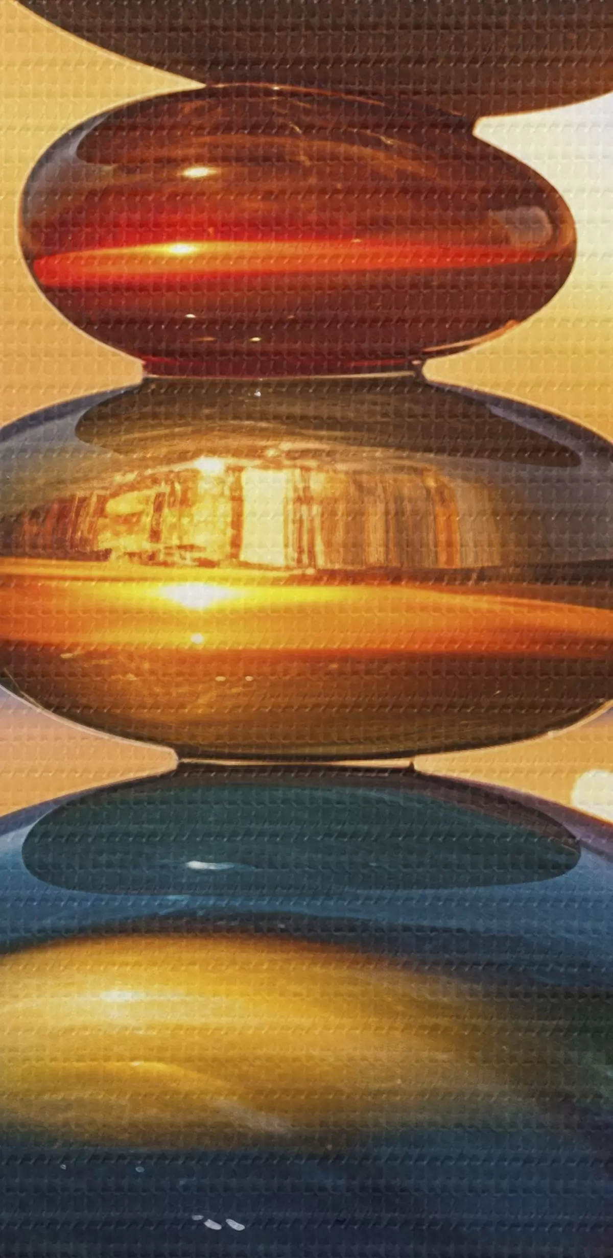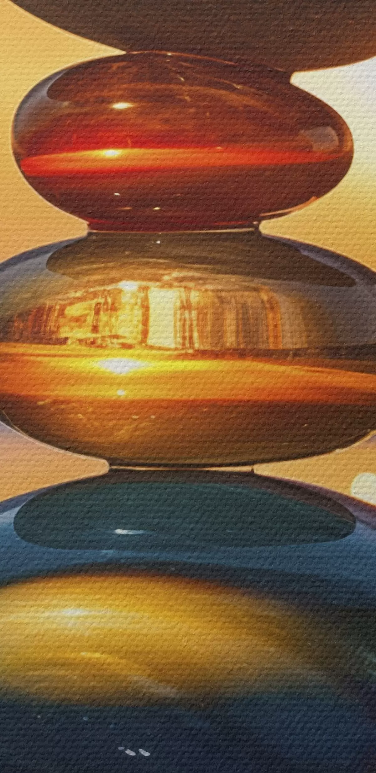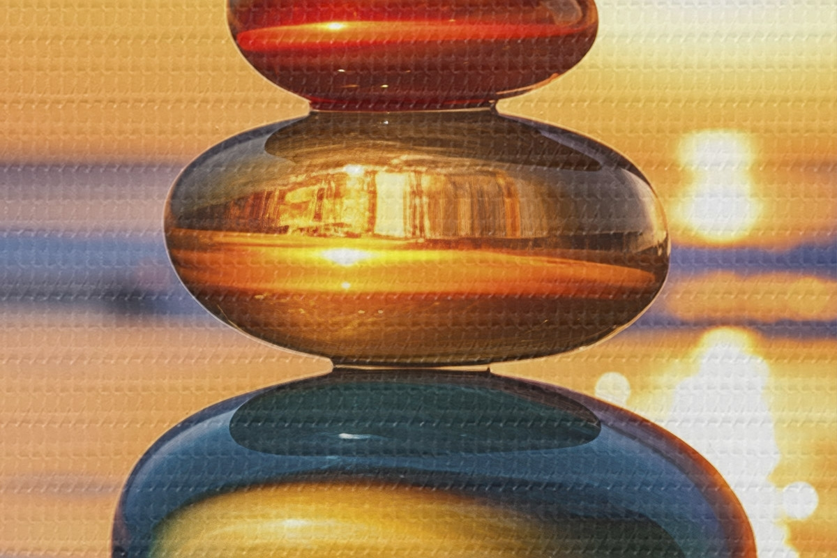 Ronde schilderijen Gestapelde stenen tegen de achtergrond van de zonsondergang Nr r45520
