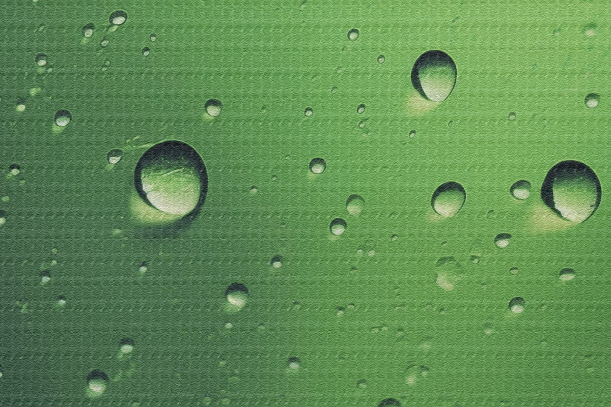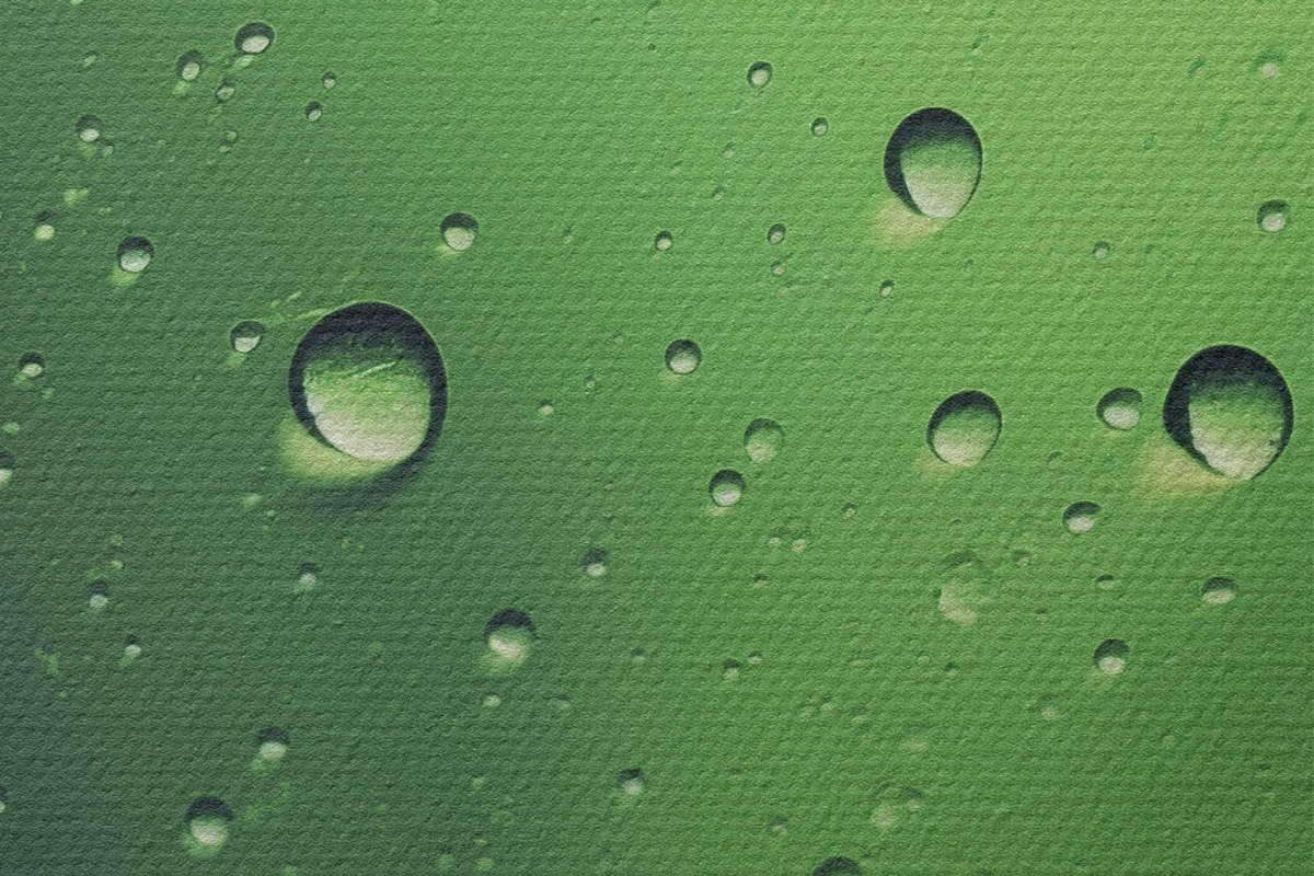 Ronde schilderijen Waterdruppels op groen glas close-up Nr r45521