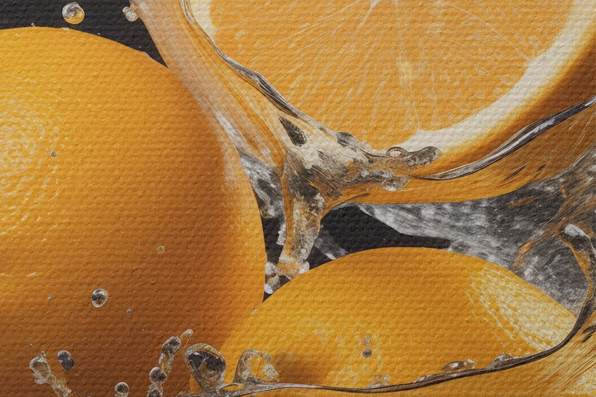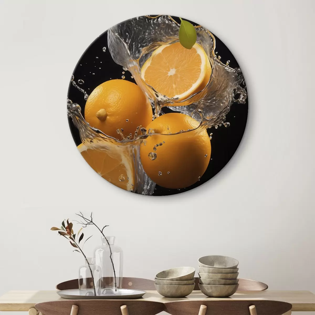 Ronde schilderijen Sappige sinaasappels in water spatten Nr r45526