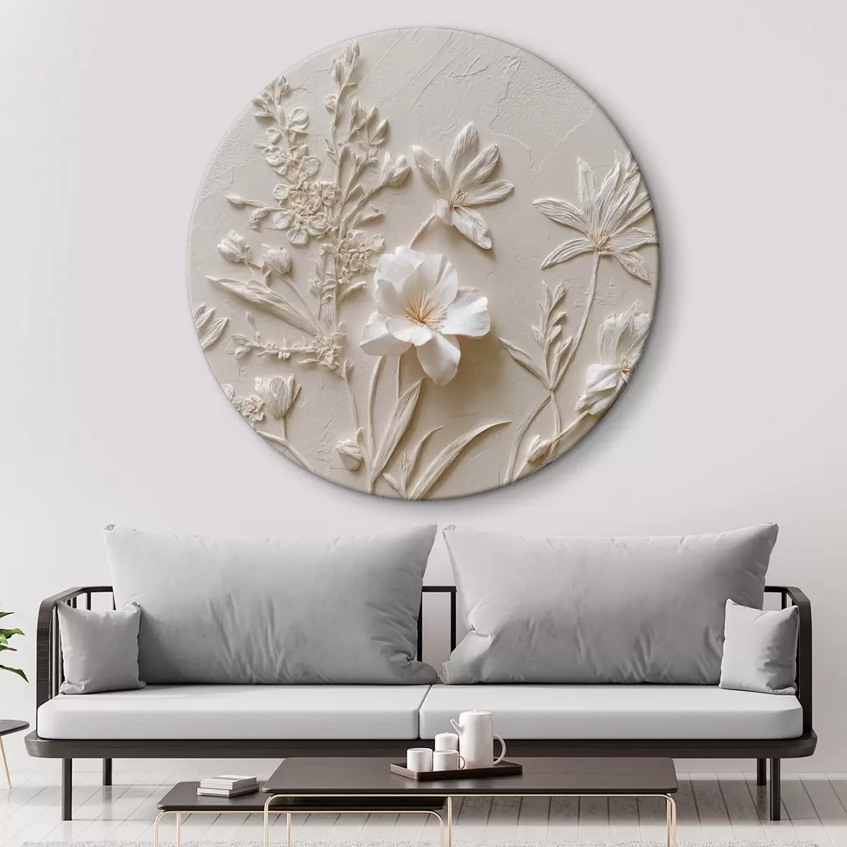 Ronde schilderijen Bloemmotief: bas-reliëf met planten op een lichte achtergrond Nr r45536
