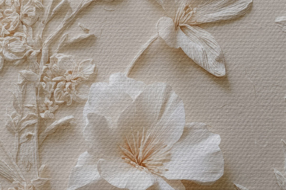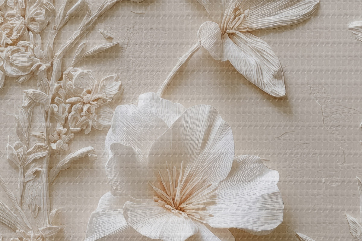 Ronde schilderijen Bloemmotief: bas-reliëf met planten op een lichte achtergrond r45536