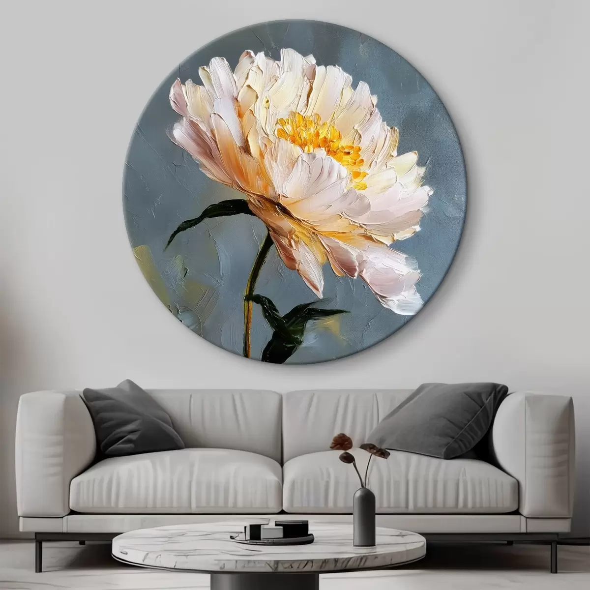 Ronde schilderijen Abstracte bloem: compositie in blauw en grijstinten r45542