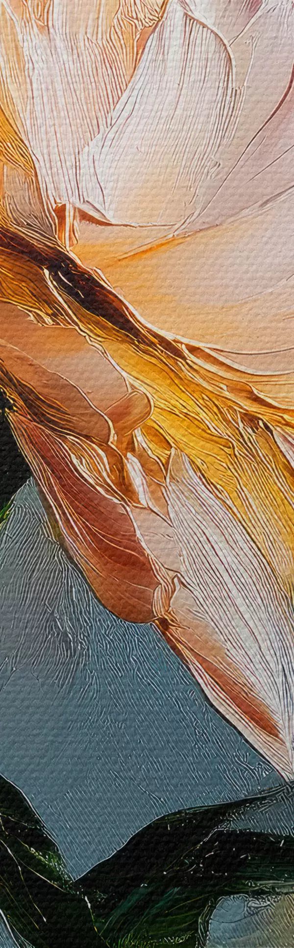 Er zijn drie soorten materiaal te bestellen: Economic Canvas - een dicht en duurzaam materiaal voor digitaal printen, identiek aan schildersdoek, waterdicht oppervlak, realistische weergave van details, materiaal met gemiddelde korrel. Premium Canvas - de textuur lijkt op die van schildersdoek (verweven kleine draden). Zachte, gedetailleerde reproductie van de afbeelding op een mat oppervlak. Eco-Premium - hoogwaardige 100% katoenen stof. Dankzij de natuurlijke katoenvezels is het materiaal duurzaam en slijtvast. Uitstekende kleurweergave en detail.