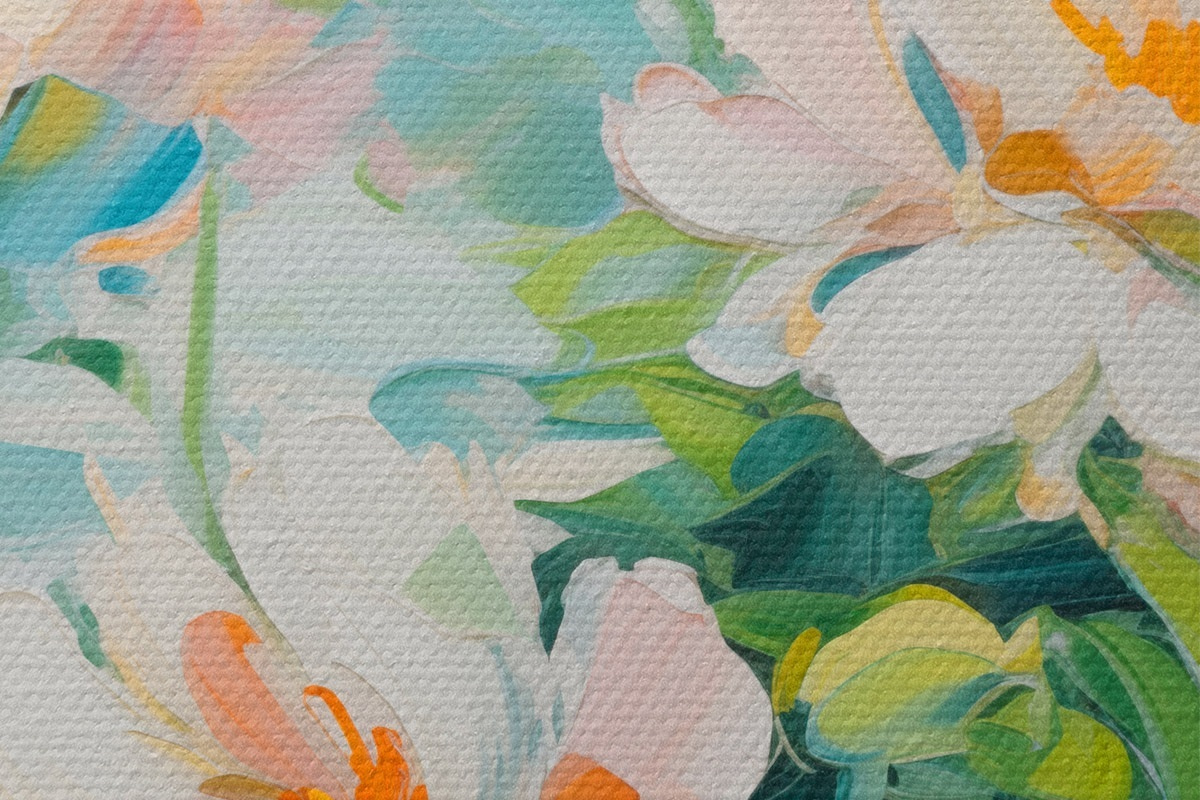 Er zijn drie soorten materiaal te bestellen: Economic Canvas - een dicht en duurzaam materiaal voor digitaal printen, identiek aan schildersdoek, waterdicht oppervlak, realistische weergave van details, materiaal met gemiddelde korrel. Premium Canvas - de textuur lijkt op die van schildersdoek (verweven kleine draden). Zachte, gedetailleerde reproductie van de afbeelding op een mat oppervlak. Eco-Premium - hoogwaardige 100% katoenen stof. Dankzij de natuurlijke katoenvezels is het materiaal duurzaam en slijtvast. Uitstekende kleurweergave en detail.