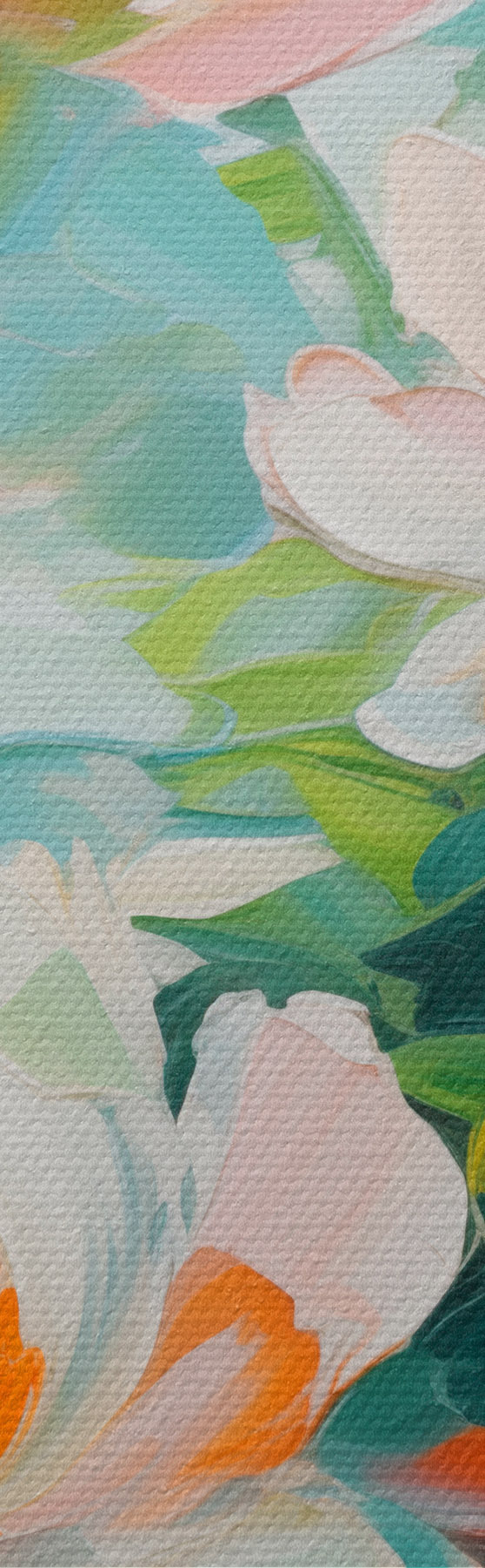 Het schilderij kan direct na ontvangst worden opgehangen. Het schilderij wordt opgespannen op een 2 cm breed houten spieraam.