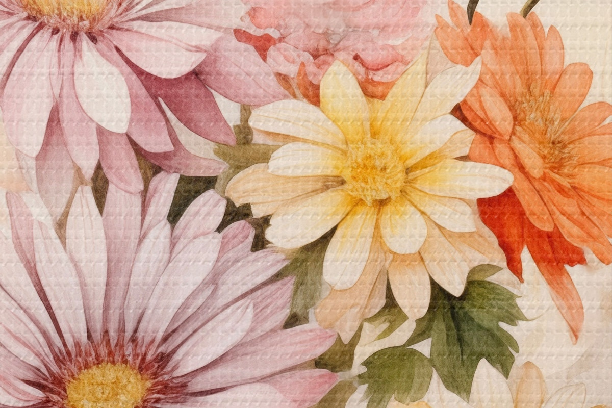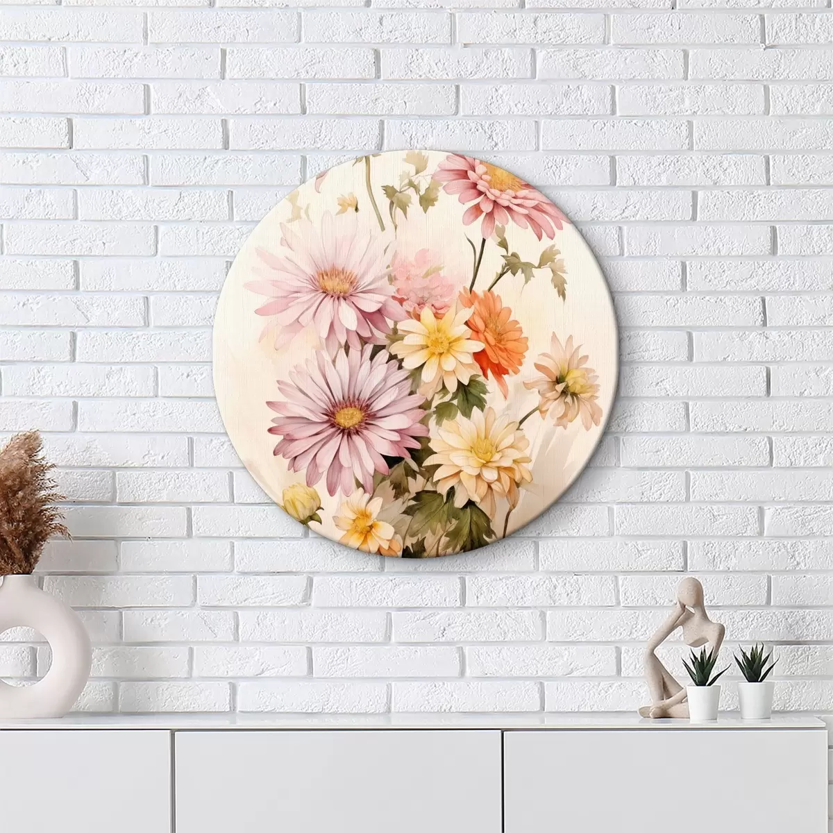 Ronde schilderijen Een boeket kleurrijke bloemen, zachte aquarelstijl, op een lichte achtergrond r45559