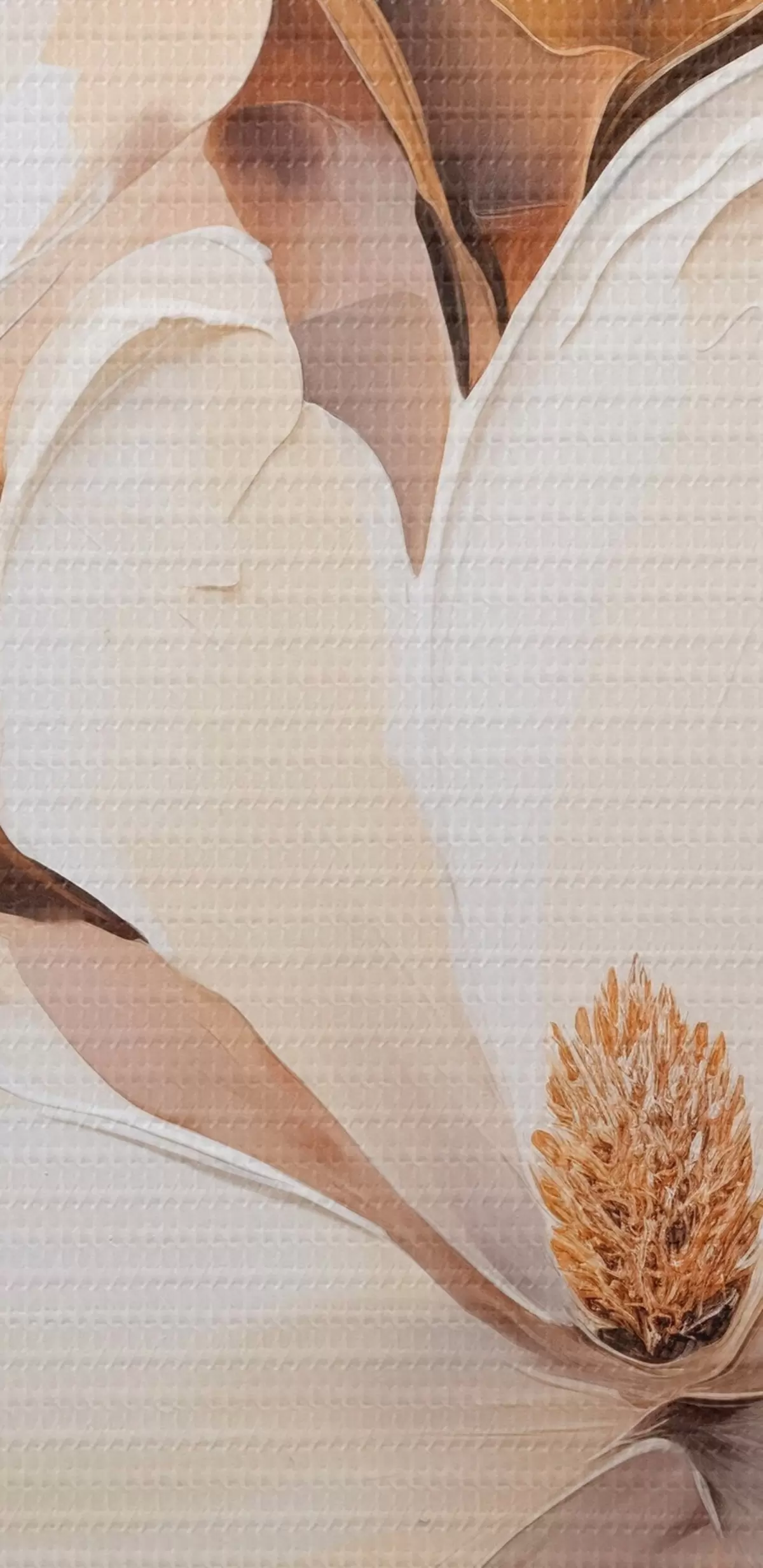Ronde schilderijen Witte magnoliabloemen tegen een zachte, onscherpe achtergrond van beige en bruine tinten, schilderstijl Nr r45572