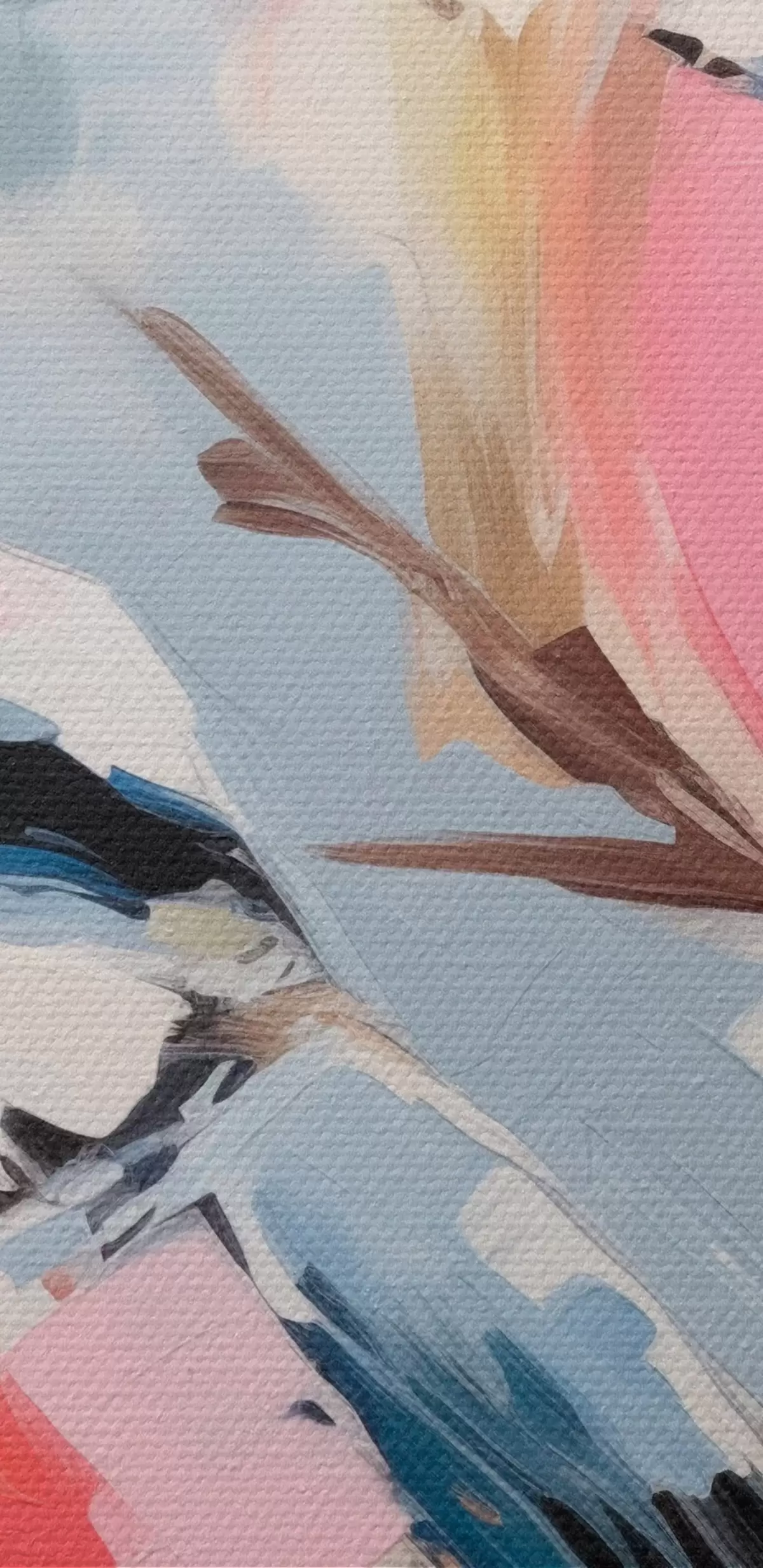 Het schilderij kan direct na ontvangst worden opgehangen. Het schilderij wordt opgespannen op een 2 cm breed houten spieraam.