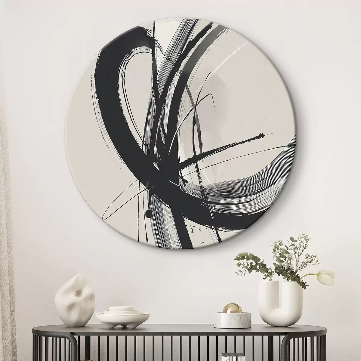 Ronde schilderijen Abstracte minimalistische penseelstreken Nr r45582