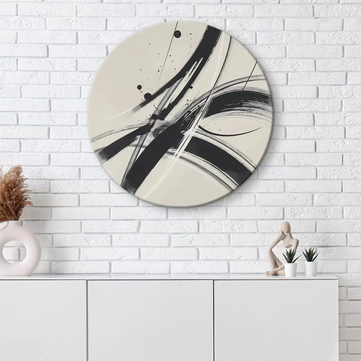 Ronde schilderijen Abstracte minimalistische penseelstreken Nr r45583